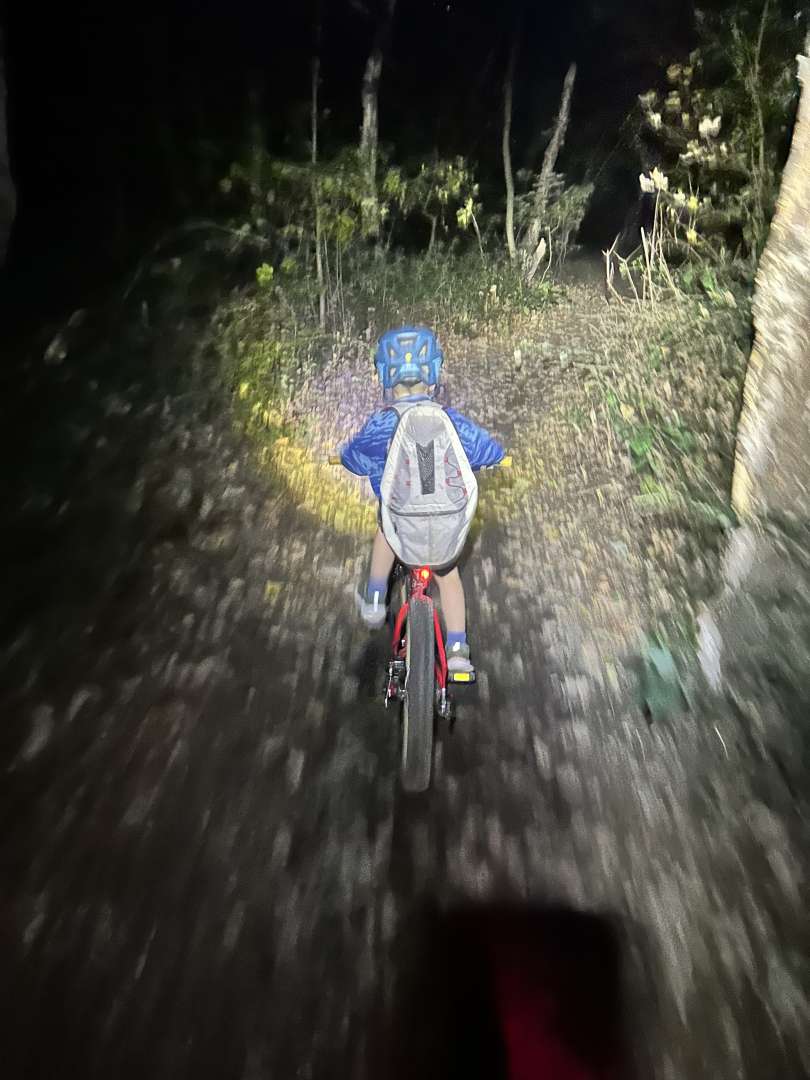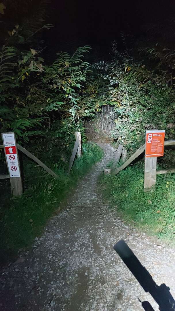 Reet dark this evening. Thick clouds meant I couldn't see anything outside of the torches. Mild, dry, fast running trails. Perfection. Also outran the monsters again!