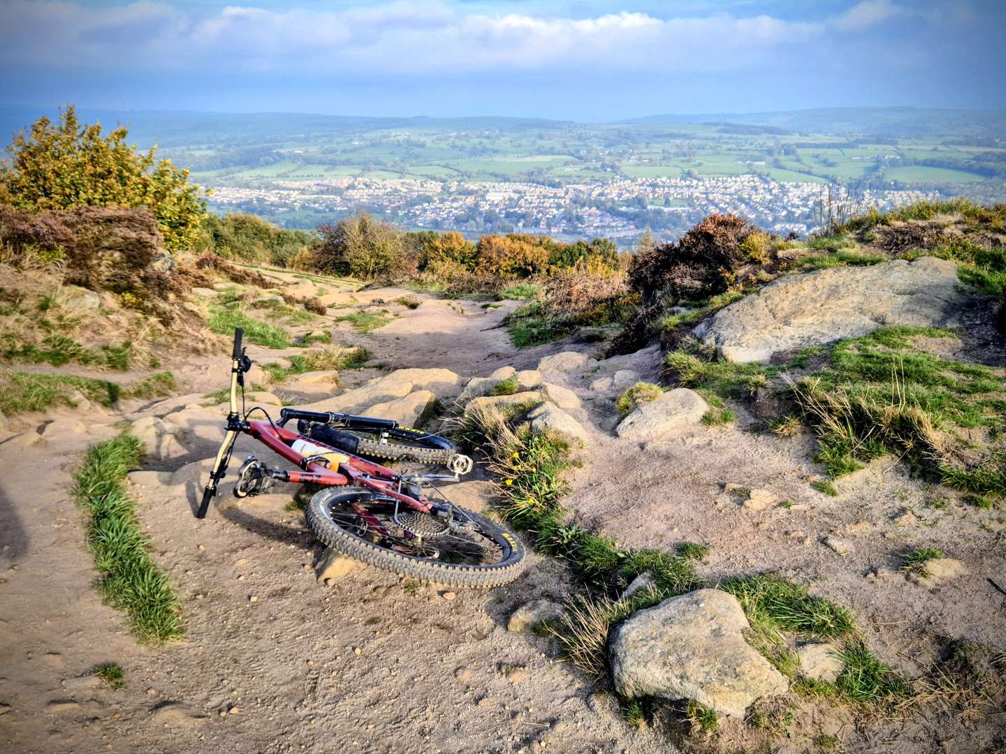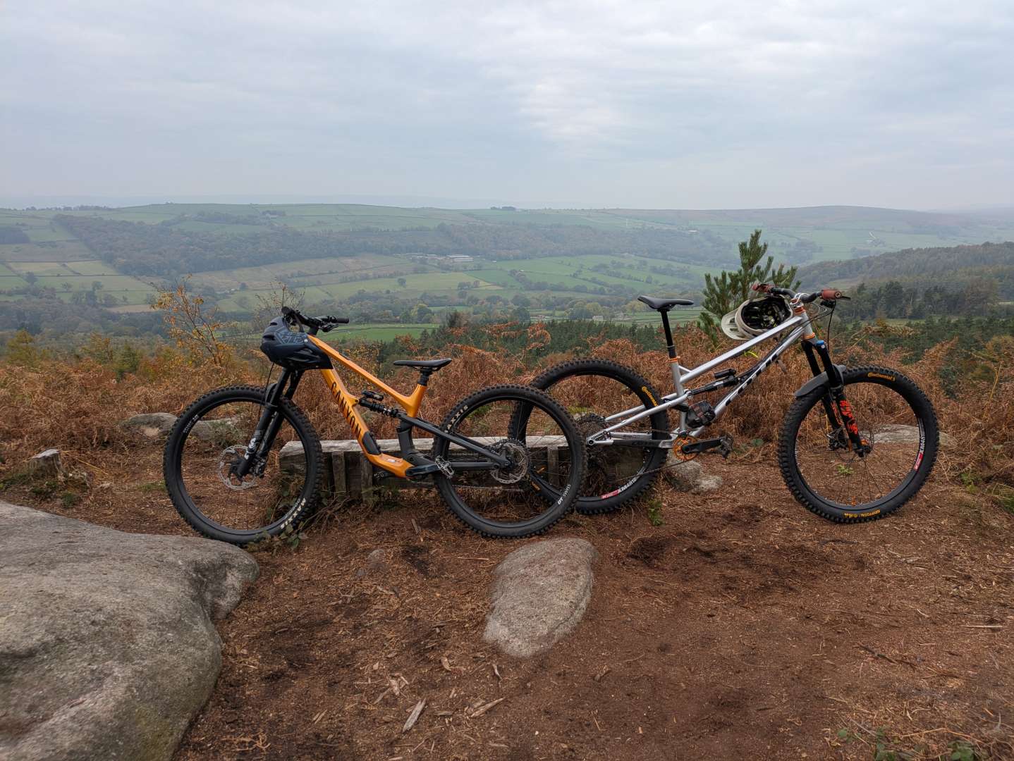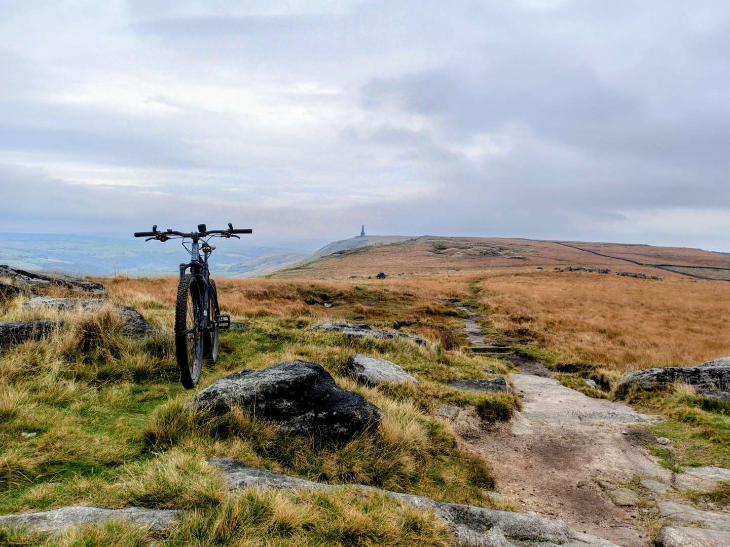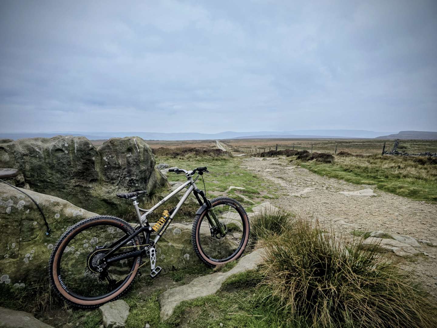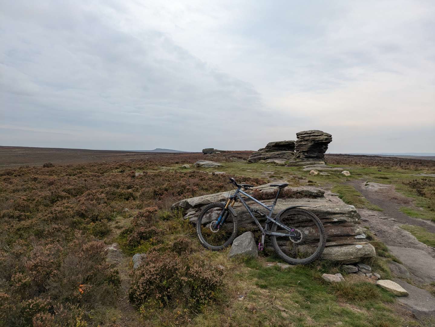 Managed to sneak in a ride over the tops before the rain arrived. Still amazingly dry on the moorland trails, maybe not for much longer. Bunch of electric motorbikists tearing it up on stoodley 😡