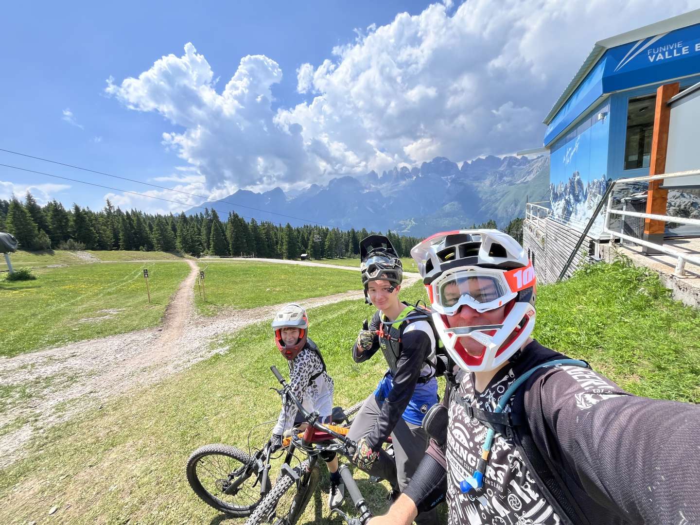 Epic day with the kids at Paganella Bike Park in the Dolomites. 4600m descent and about 50km of riding. Plenty warm enough for Aussies too.