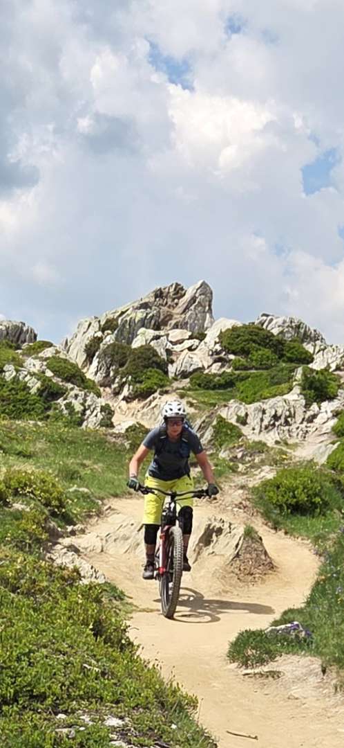 We did 30 miles and 3000m of descent. It was hot and today's ride was full on steep and rocky.