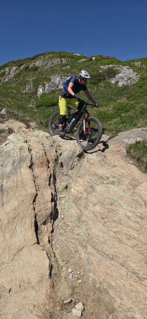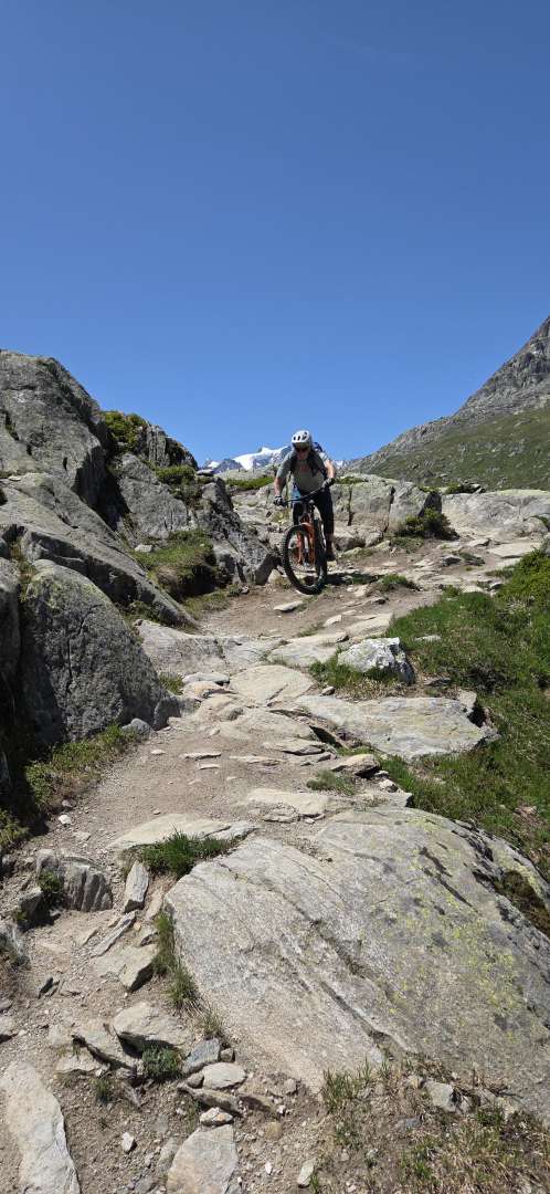 Really good natural trail from the top of Rabbijoch going south. Used to ride it often when guiding Transalp. It wasn't officially part of the tour, but it was worth the detour so long as the snow had cleared.