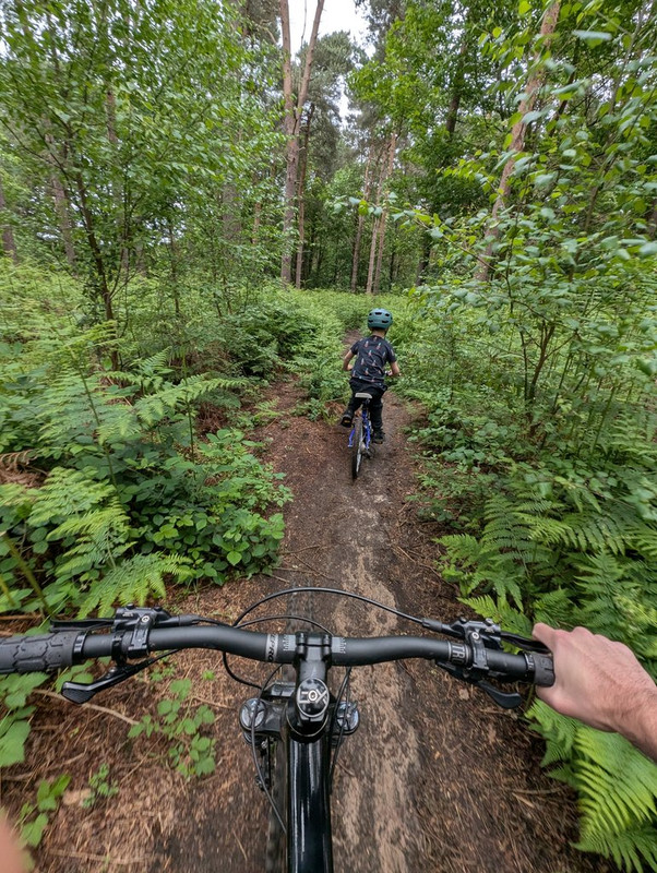 Well we got some rain in Northants! Actually quite nice after all the hot weather but I'd like it to stop now. We just went on a little local woods singletrack explore. Need to get one of those springy tow ropes for him to make the uphills a bit easier
