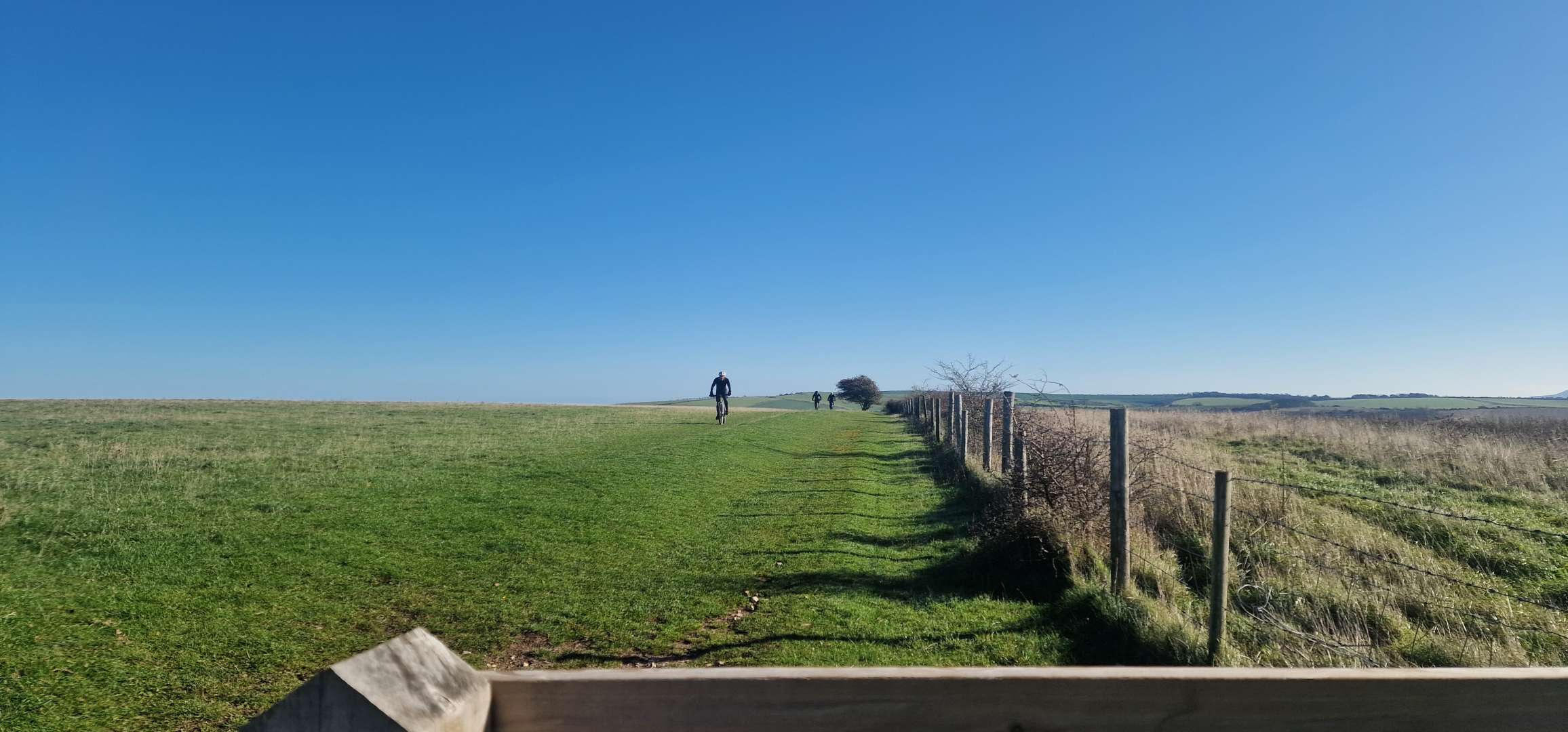 Fab sunny if chilly morning around the dyke. Great visibility out to the Isle of Wight (think that's whitecliff bay in the distance in pic 3). trying to remember my layering strategy for climbs and headwinds. I haven't fitted my ugly guard yet either, which meant getting razzed while failing to negotiate a fast cowpie slalom at the bottom of the dyke
