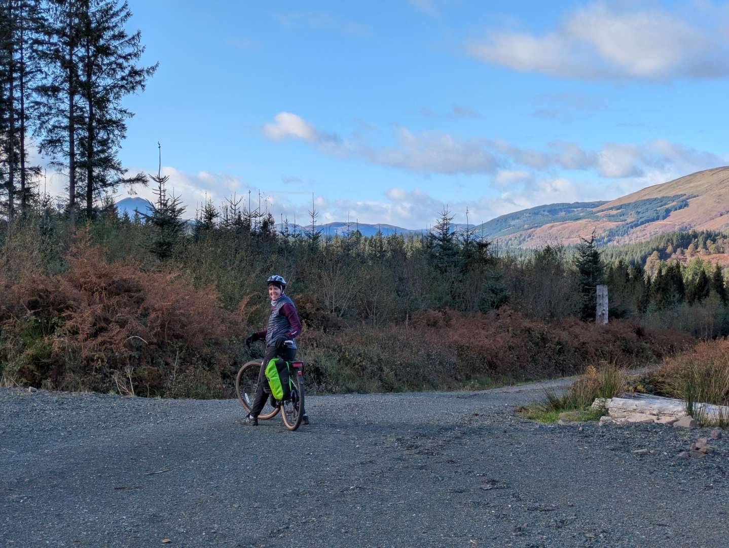 Quiet roads and gravel from Aberfoyle to Drymen for lunch and back to Aberfoyle. The annual chase the non cyclist on her bike ride.