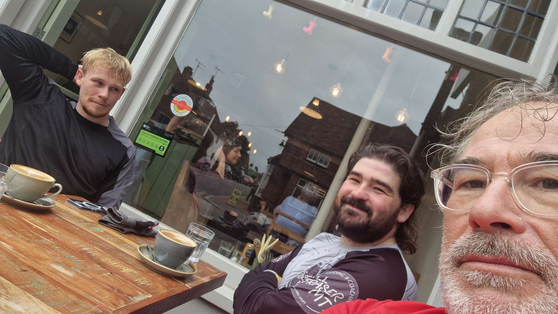First stage Reeksy1's rear brake died. No chance of getting a Magura lever on a Sunday so we decided to share my bike.