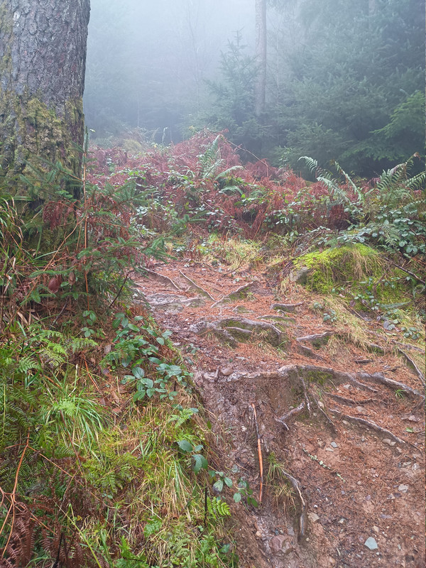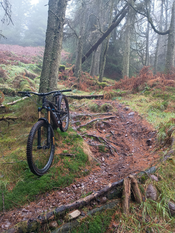 Well, Aberfoyle was at it's most Aberfoyle-y today: roots, rocks and gradient, with traction seemingly having migrated South. Weather had pretty much murdered the views, so without further ado, welcome to... "Corner Corner": a compendium of today's top turns (I only noticed afterwards that they all seem to be right-handers).