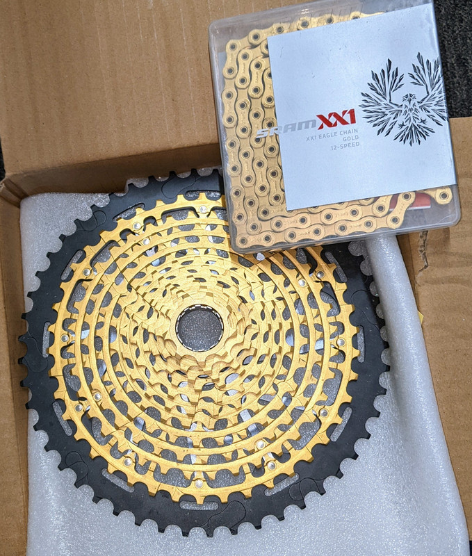 I'll be selling this gold bad boy when I can get around to it, along with the chain. Both brand new, XD, 12spd.😉