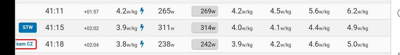 But my best 3 efforts in the last 90s days are from when I was lighter (as low as ~76.3Kg) and a bit stronger (~294W in early March and been steadily declining until that Newbury TT effort), so Zwiftpower is working on 280W and 3.61W/kg 95% figures...