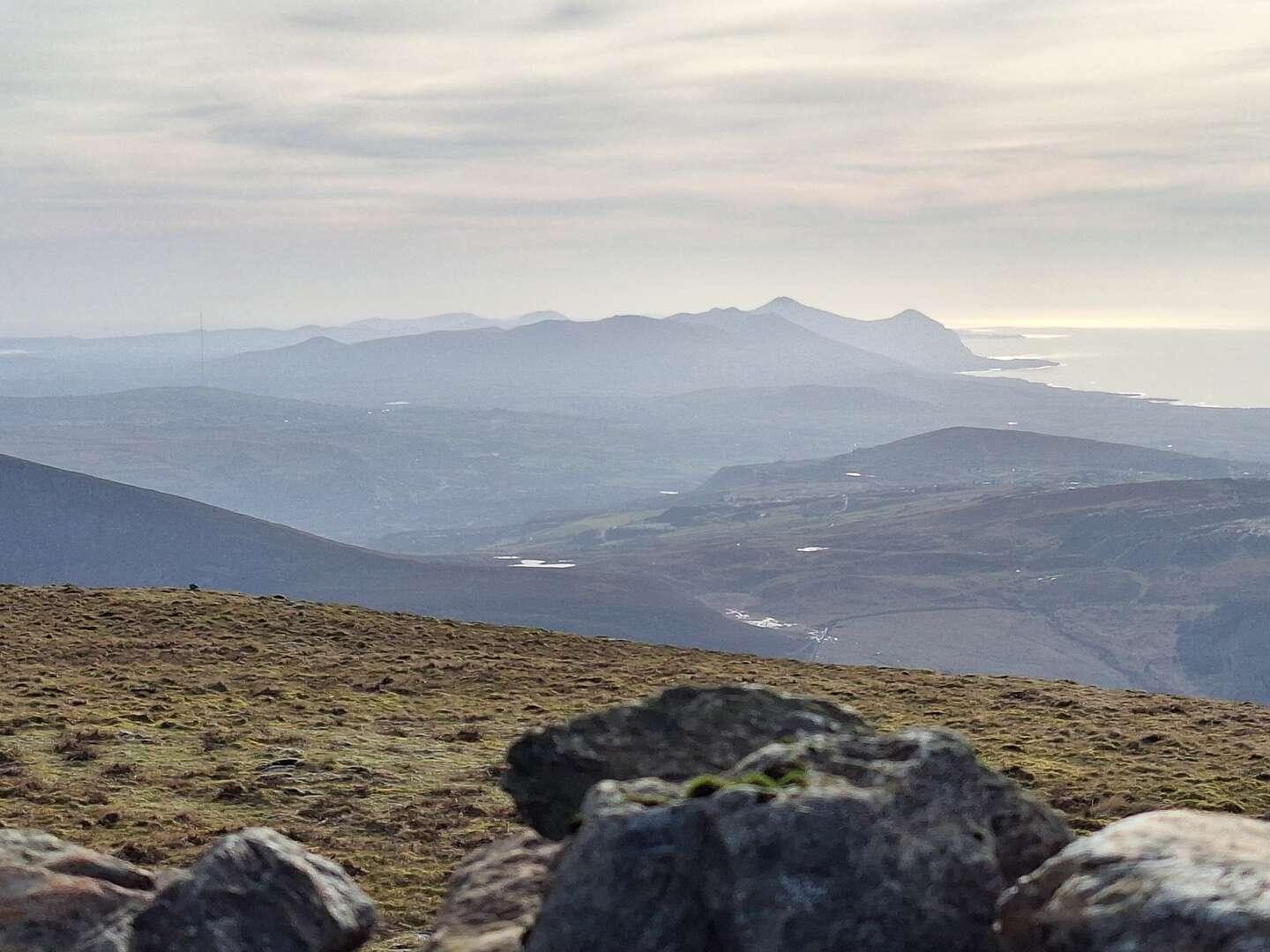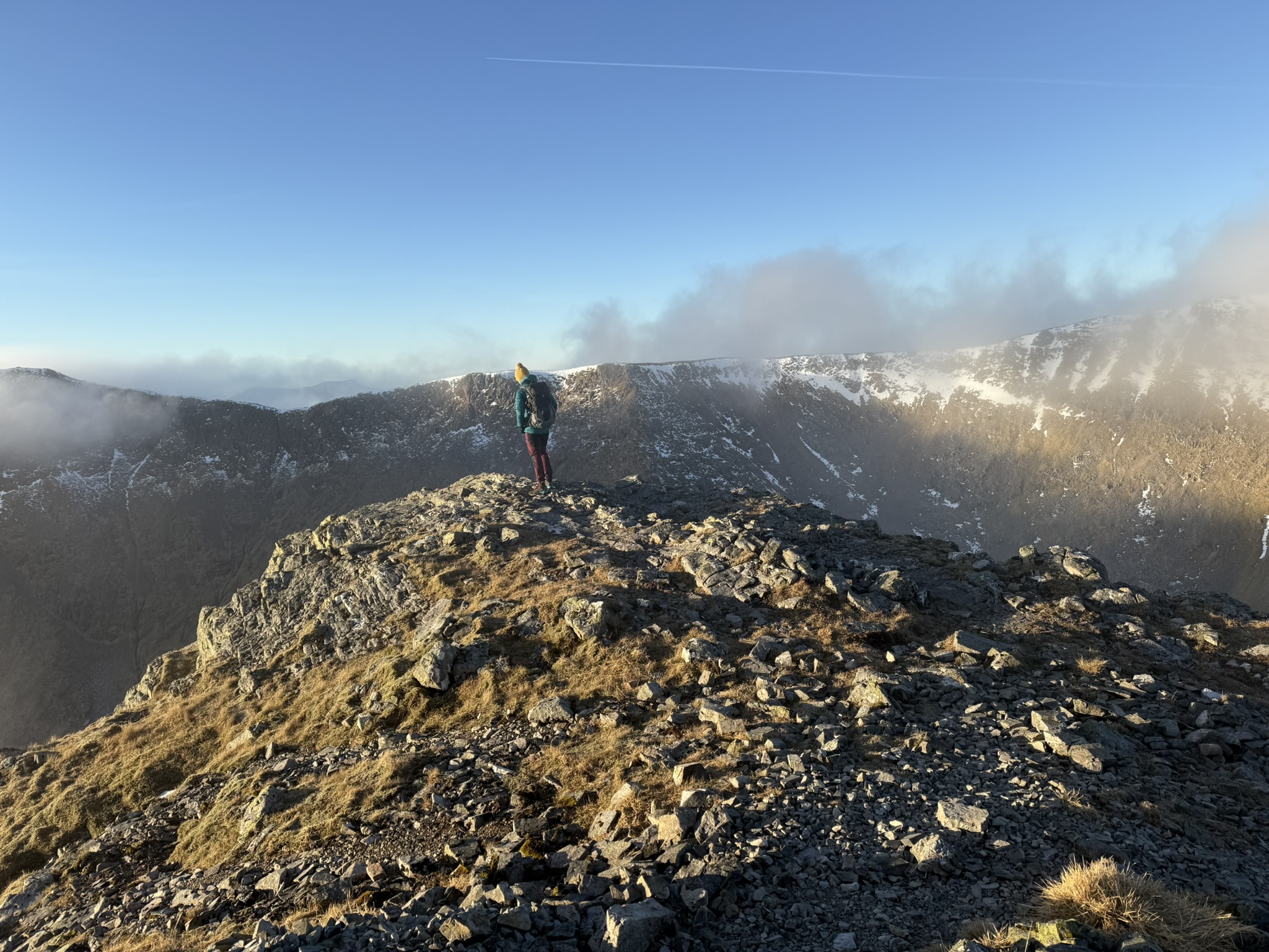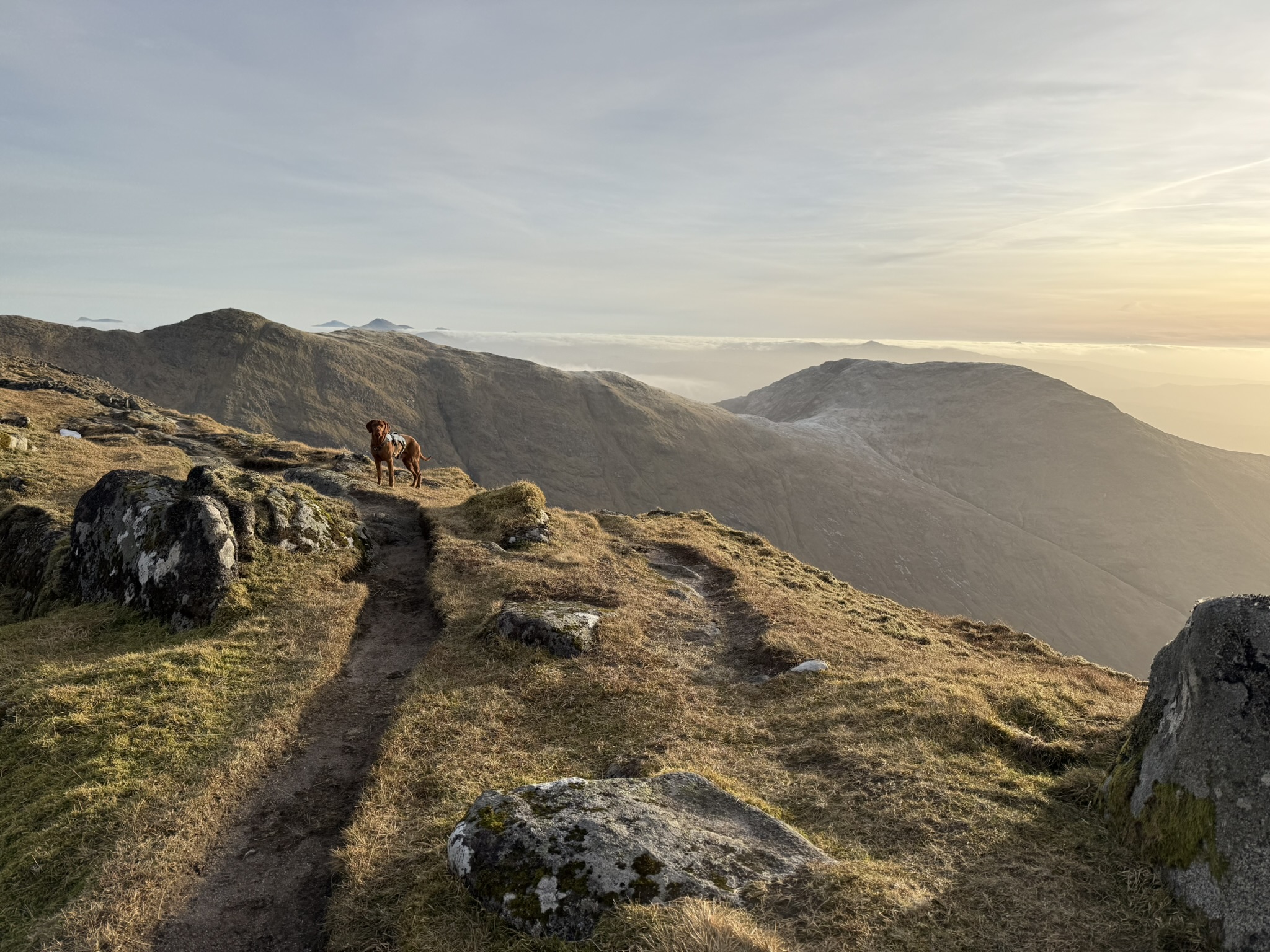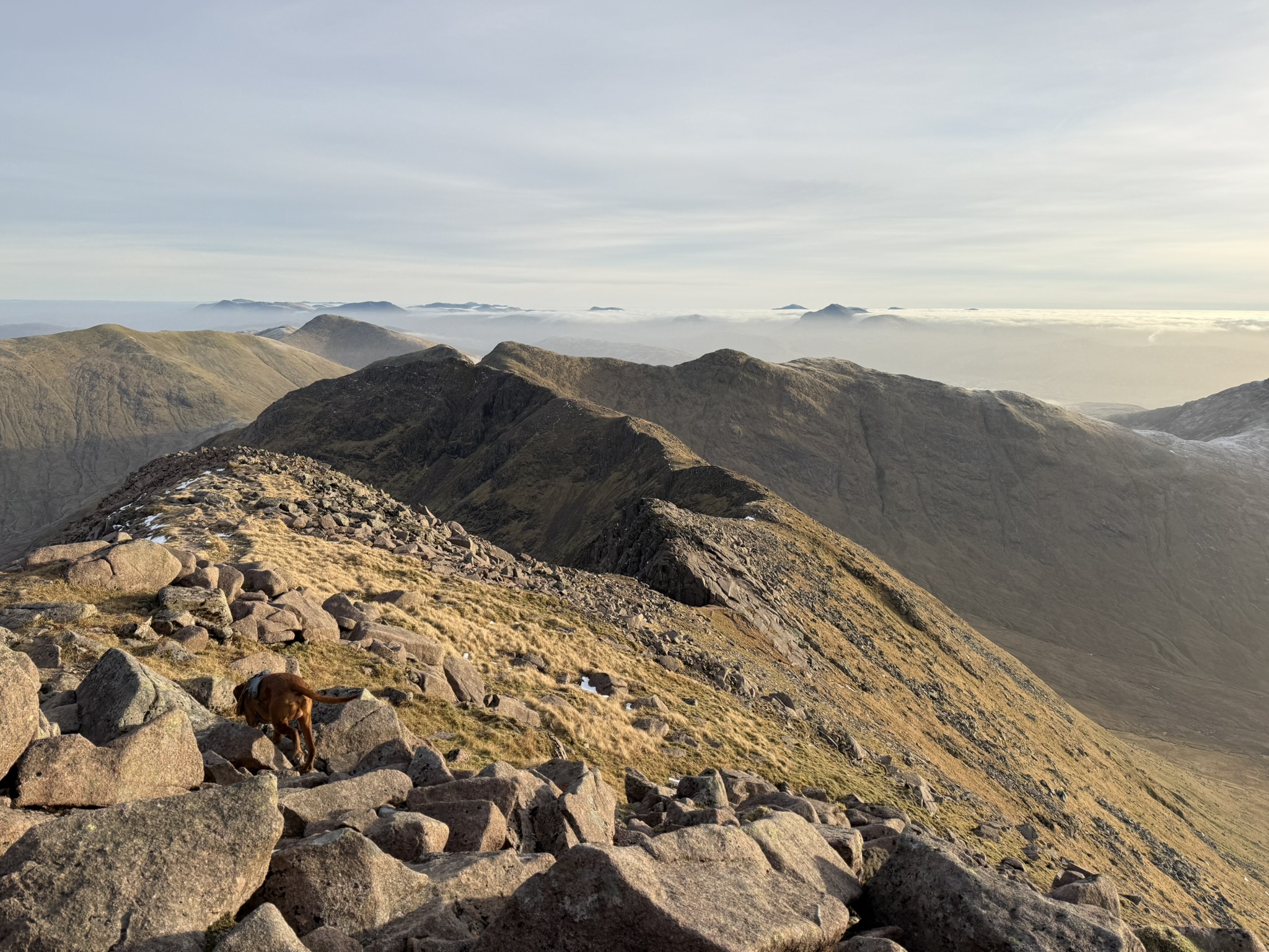 Low lying cloud to the west for most of the day with only the biggest peaks poking their summits above.