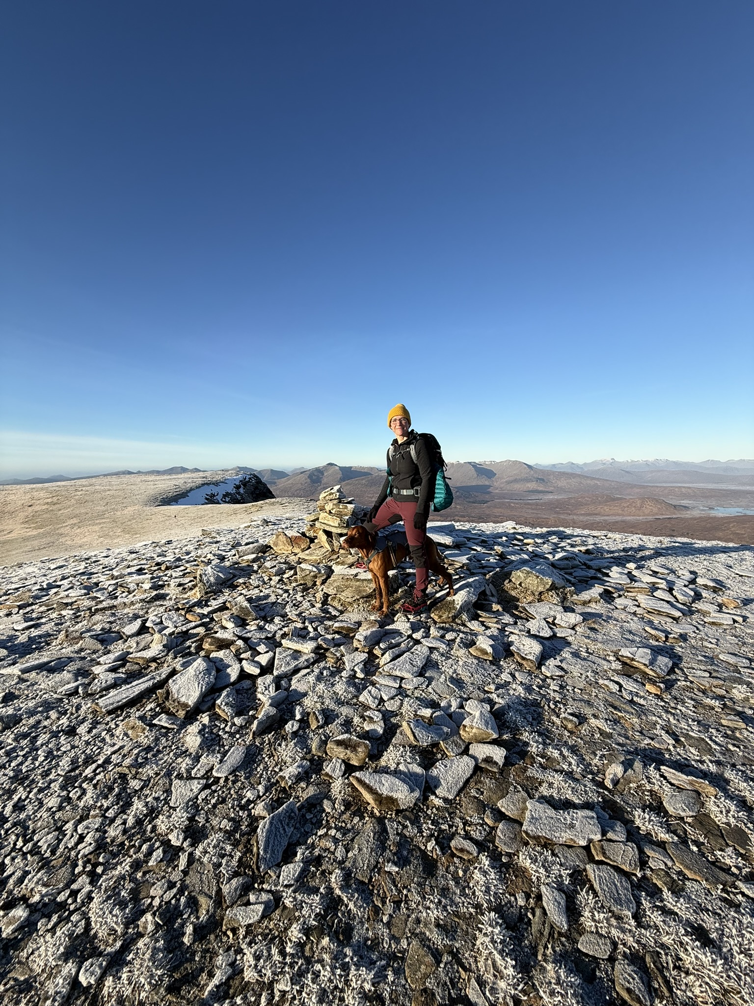We met a lady who was seriously cold (it was 5/6/7*c on summit with a breeze and she was in running shorts and t-shirt) - she would not take a fleece from us and headed down to Coire a Chuilinn the steep way. Hoping she was OK.