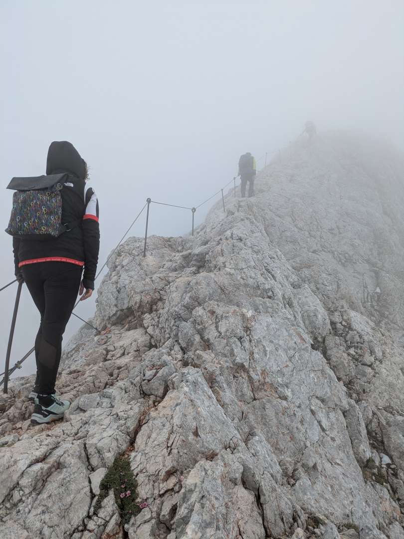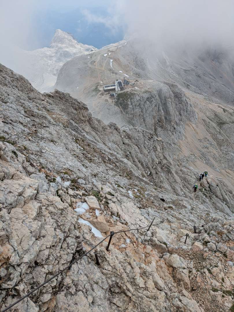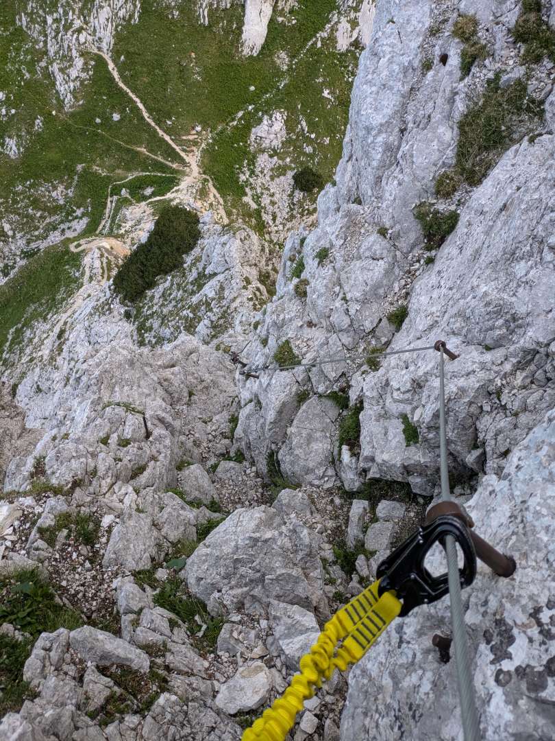 We were in the Slovenian Alps last July and I'd always wanted to go up the national mountain Triglav via one of the via ferrata routes from the north, choosing the Bamberg route which is the trickiest option. There is several hours of grade 3 scrambling and a fair amount of cables and spikes in places. At 1860m of ascent it's not ridiculous to do in a day but my body was definitely not used to going full bore for 11 hours, I couldn't stomach food and I think the air density at 2864m made me light headed, forcing me to place me feet with excessive care most of the so called easier route down. Talking of the descent (Prague VF route) it was much harder than I expected. The national mountain is climbed on this route by the sort of unlikely folk you see going up Ben Lomond, except here they're doing continuous technical and exposed terrain even if they do spend the night in a hut at around 2500m.