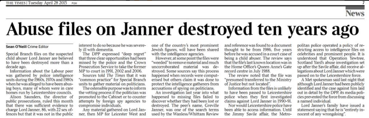 On the flipside, yet again, [url= http://www.thetimes.co.uk/tto/news/uk/crime/article4424417.ece ]Special Branch/MI5 were monitoring Janner[/url]: