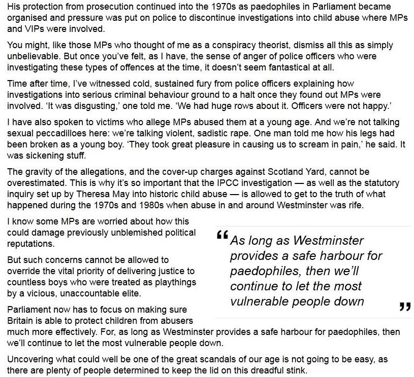 The rest however is reasonable deduction... you can poo poo it all you like, but time and again I've been on the money, from Leon Brittan, to Lambeth, to MI5 involvement in protecting paedophiles...