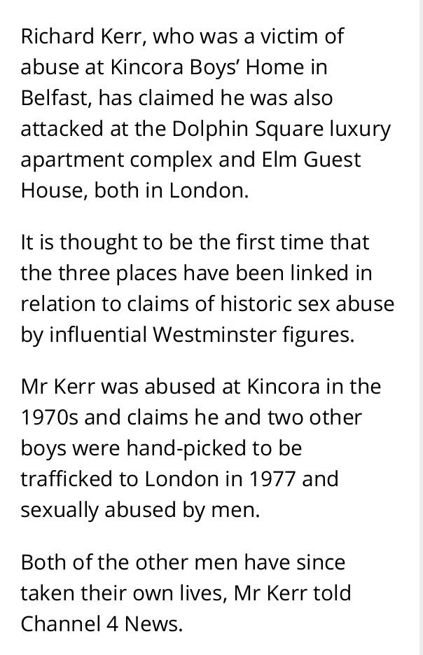 Additionally, [url= http://www.channel4.com/news/vip-paedophile-ring-westminster-abuse-elm-guest-dolphin ]Channel 4 news tonight will have further allegations linking Kincora to both Dolphin Square and Elm Guest House[/url]: