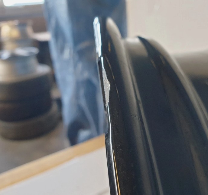 Need a wheel to make up a set for some winters (check me getting ahead of the game on about the warmest day of the year). This on has come up on ebay. 2nd Hand and mint apart from this odd issue on the rim. That's not going to be an issue mounting a tyre is it? If I either covered to stop corrosion or used a bit of super hard epoxy filler and then attempted a bit of a colour match cover....if I could be bothered.