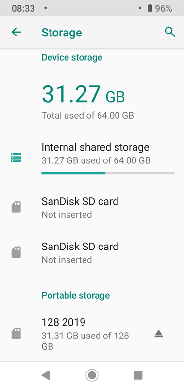On checking my storage is says "card not inserted" but is there as portable storage.