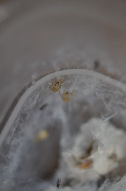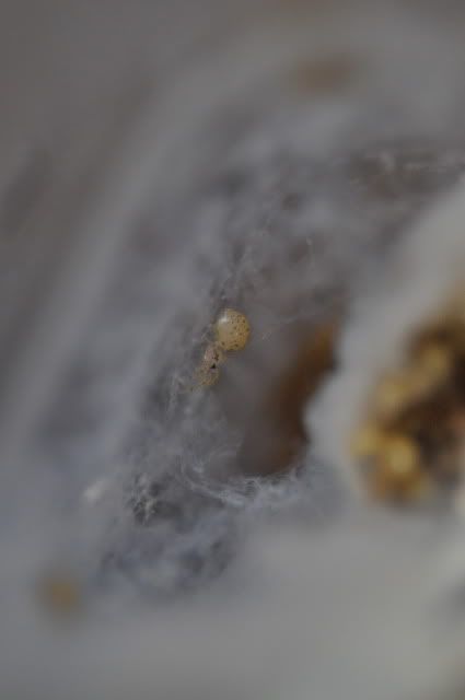 The female has been taking great care of her egg sack and standing guard for three weeks. Over the weekend she was seen roaming around her enclosure so I had a look to make sure the eggs were ok (they are very susceptibly to mould). Luckily I found some lovely little slings.