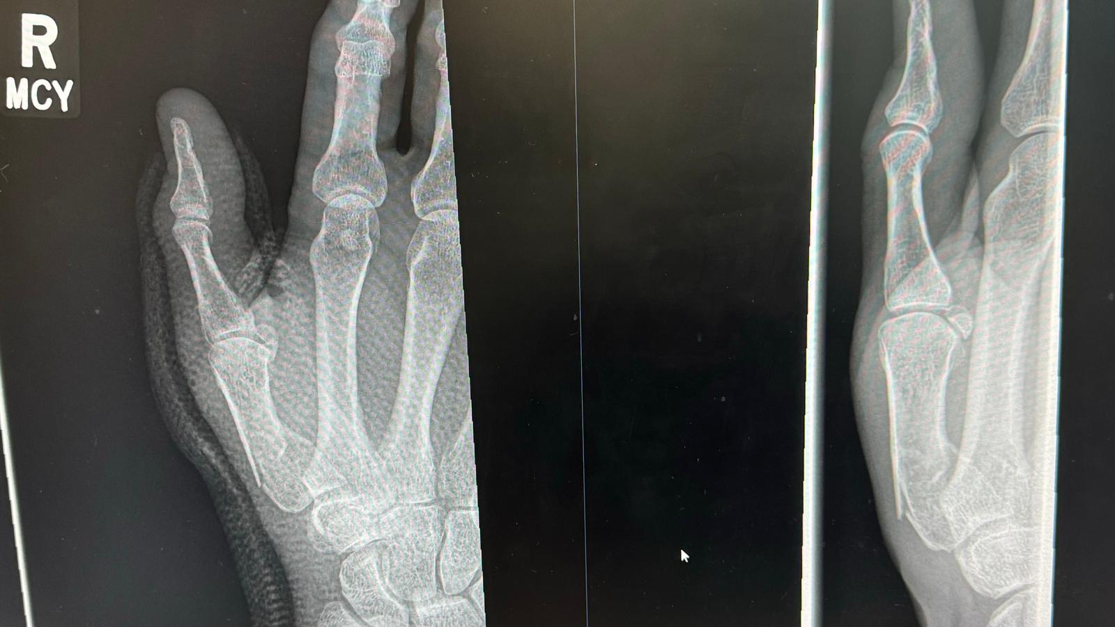 I crashed back in 2012 resulting in a broken right thumb (I'm right handed!). I think mine was a Rolando fracture, 1st metacarpal fractured into 3 pieces.