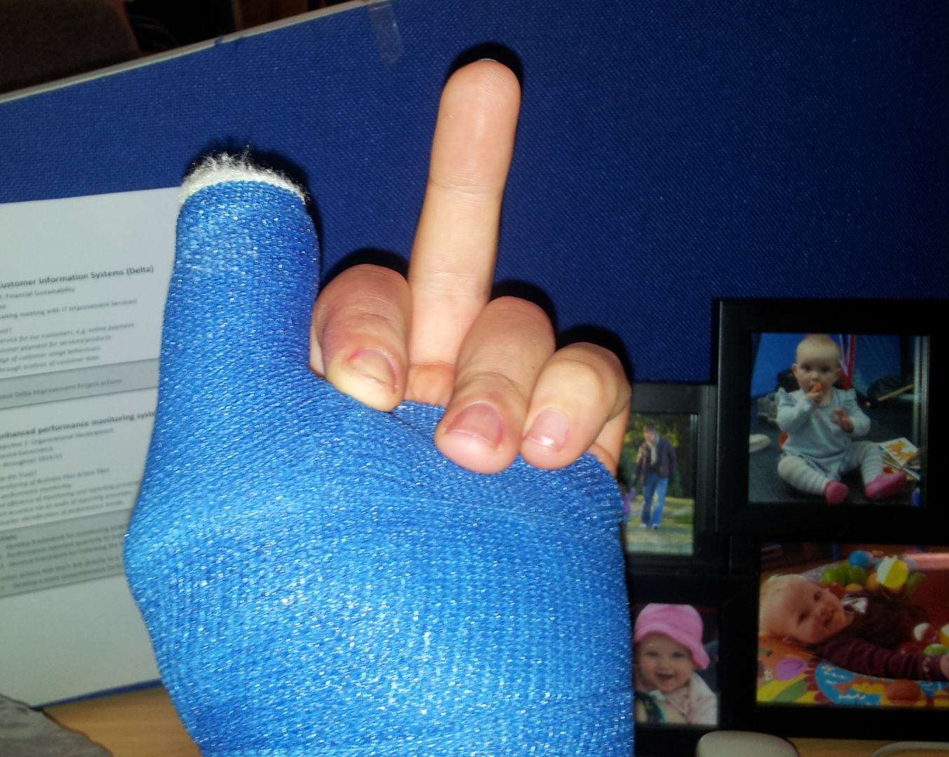 Having a cast in the thumbs up position, plenty of piss taking. Enjoy