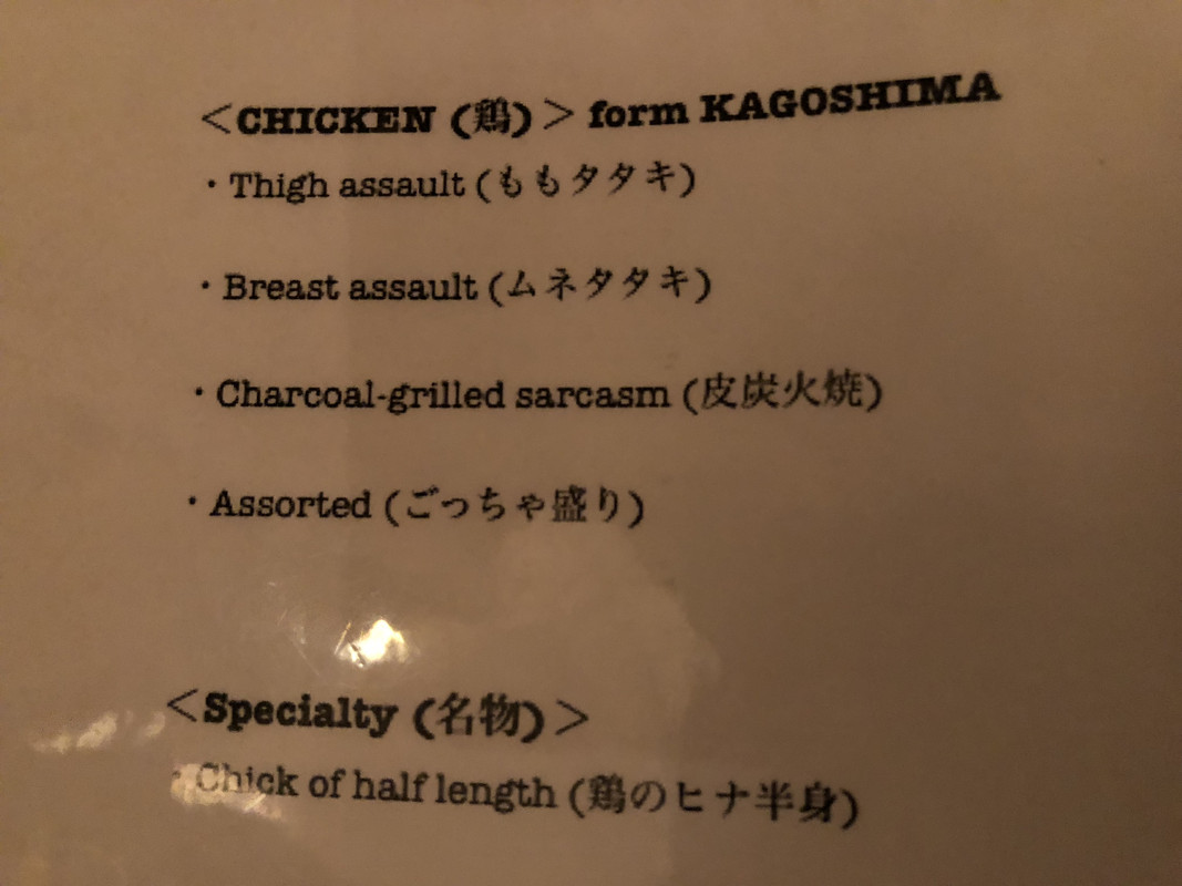 That menu you posted above made me spit out my tea with laughter. Brings back many memories of unfathomably bad translations on billboards / restaurant menus / tourist maps.