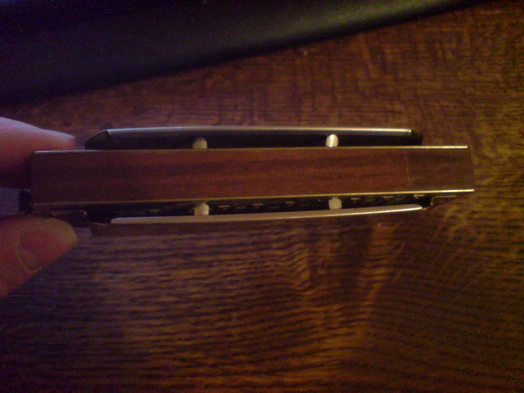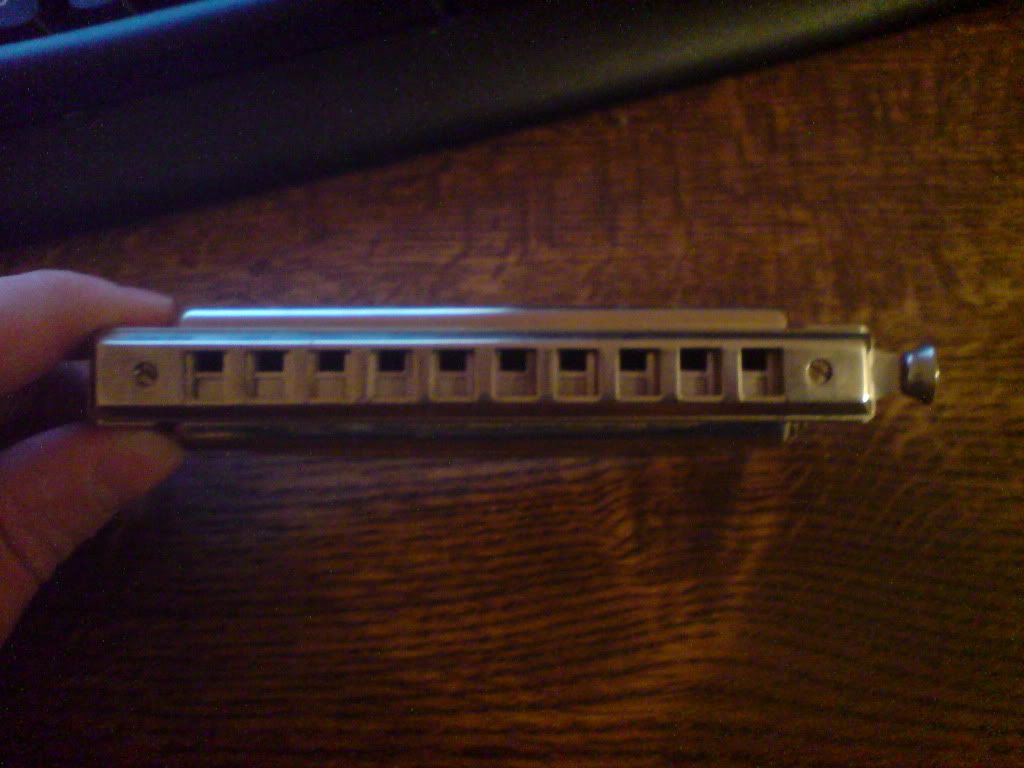 Yup - it's a chromatic harp - you use the slidey thing to get the sharp and flat notes, unlike a diachromatic 10 hole harp, where you need to 'bend' the reeds to get the forementioned notes.