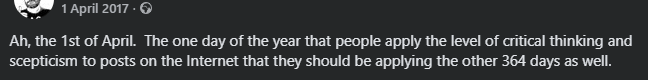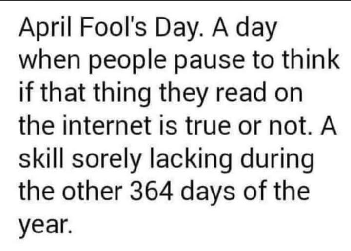 Given the current situation, I'm not sure that April Fools has any relevance. Is anything really unbelievable any more?