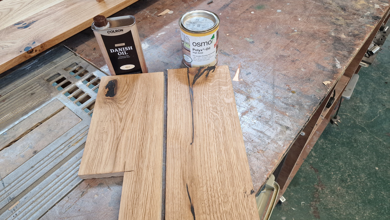 I wasn't sure whether to use Osmo Oil or Danish Oil. I knew it didn't need the hard wearing floor grade protection of Osmo but what would the different finish actually look like. Well, here are the two sample off cuts I tested, can you tell which one I eventually used?