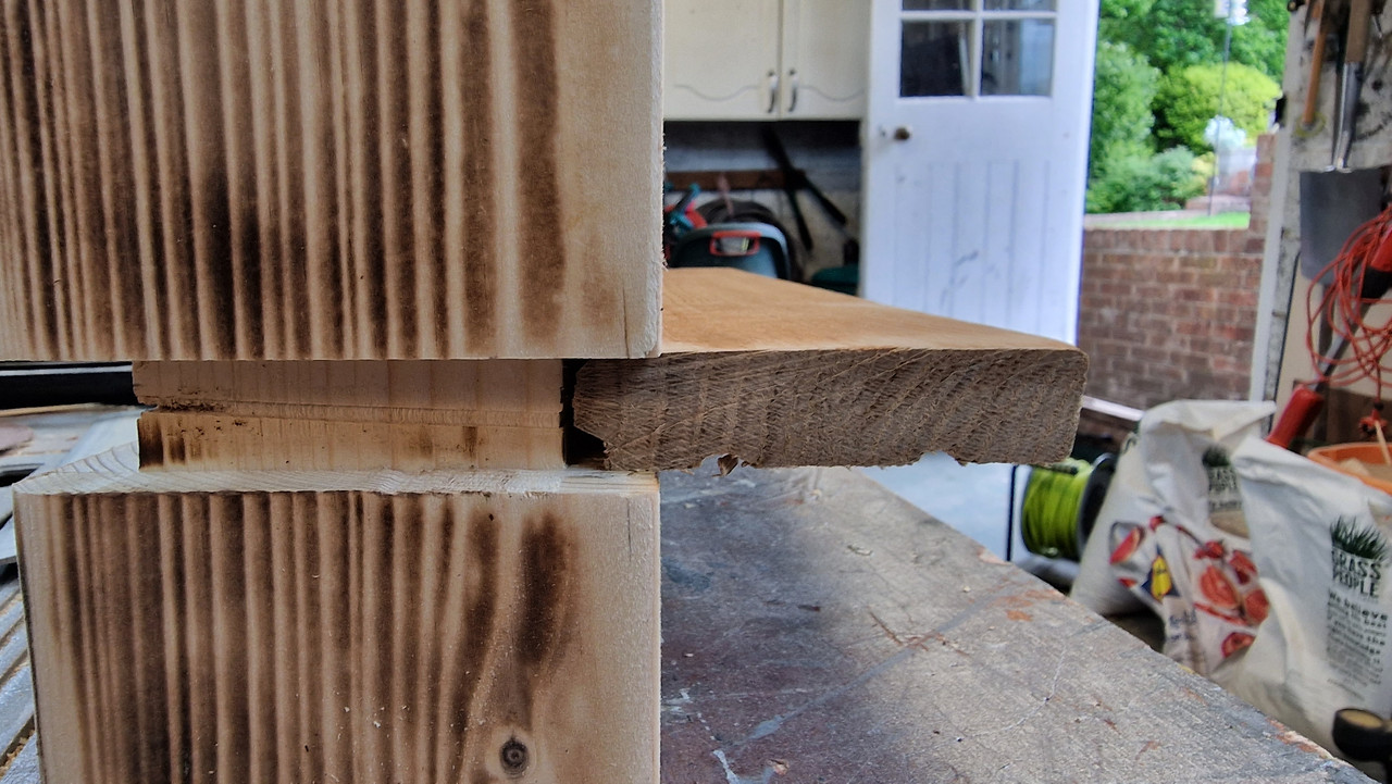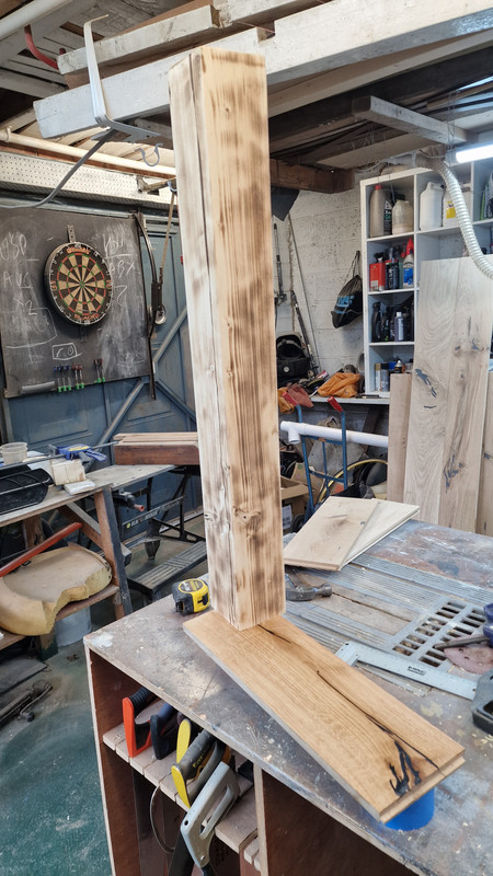 The main post will be sanded to give a more even burn effect and this will be minimised as I discovered this morning that we don't like the burnt look that we suggested yesterday.