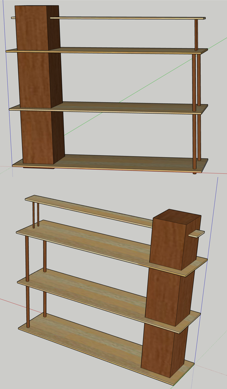 Apparently, once this is finished, I want to make a similar and complementary shelf to hold the mini-stereo and speakers.