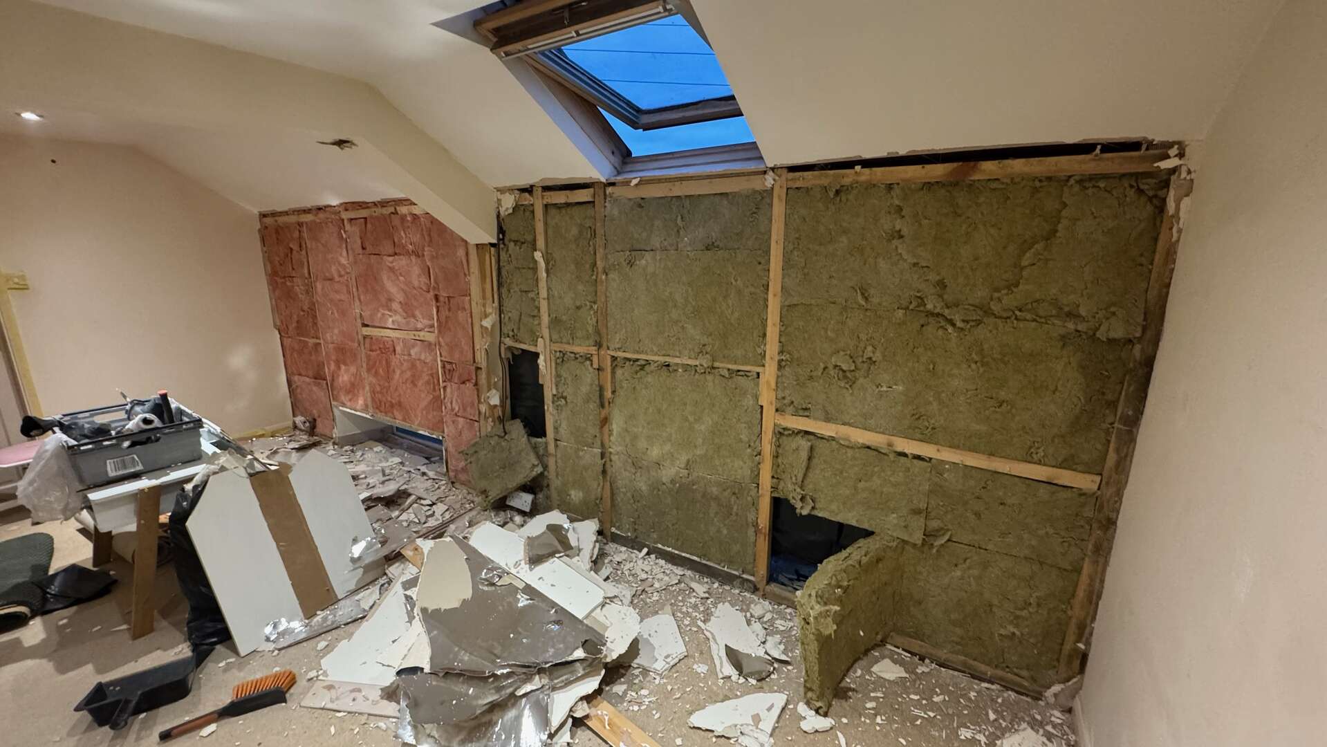 I helped my brother remodel his flat in a converted townhouse - 1850s building converted to flats in the 1950s. We wanted to move a stud wall between the kitchen and the bathroom - were about to start knocking through from the kitchen side, but for some reason changed out minds and started from the bathroom side instead.
