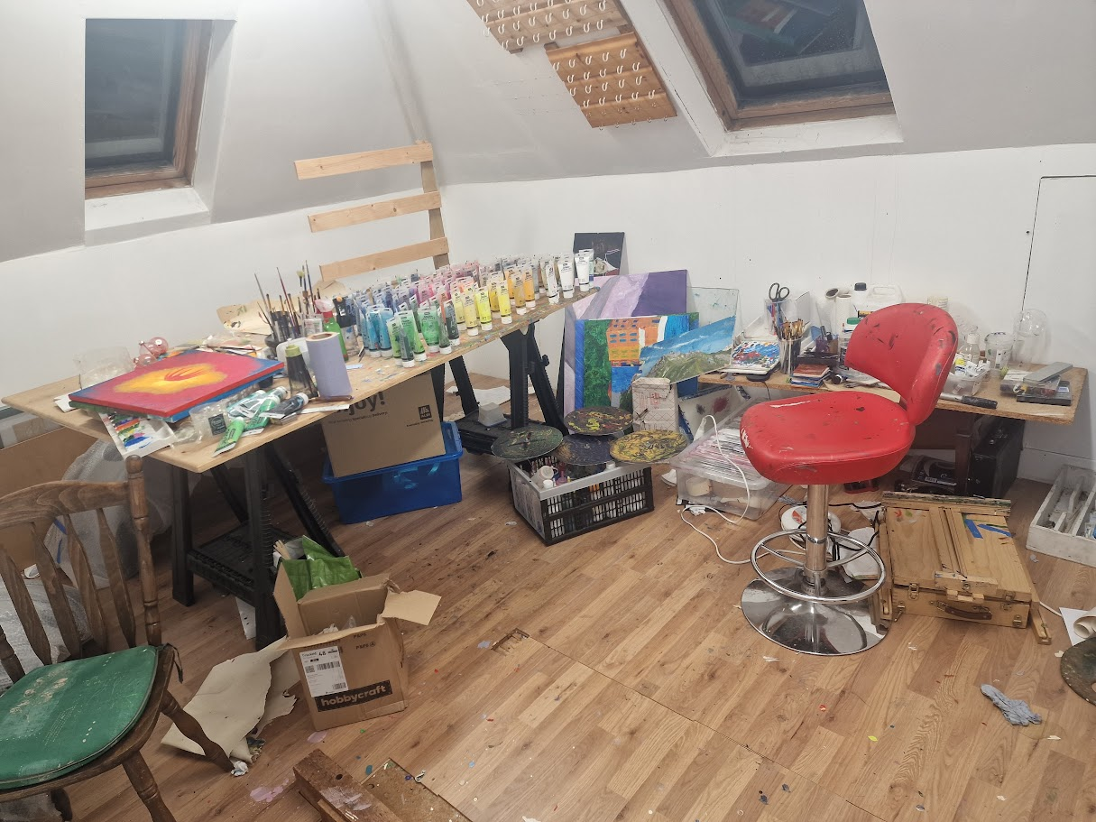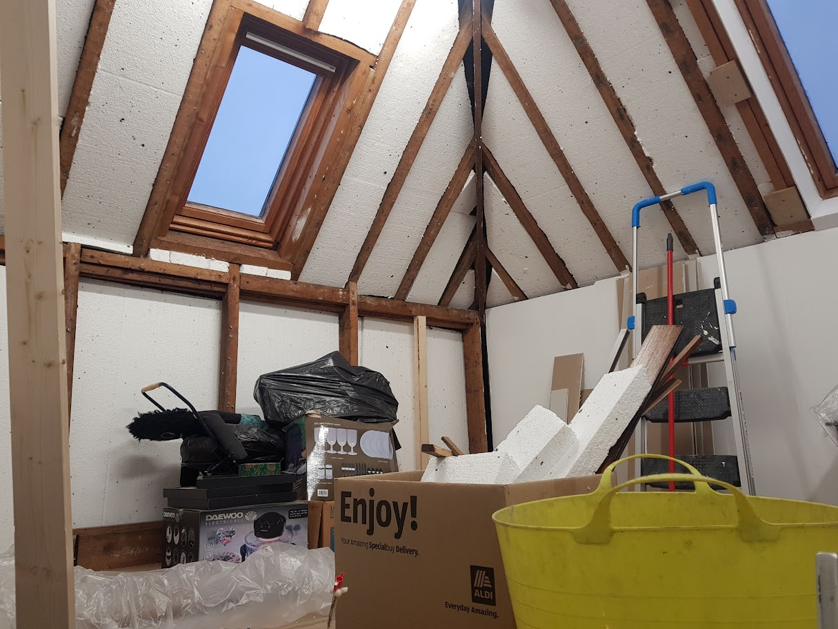 We were lucky as we already had two Velux in there. But plasterboard over the insulation, and you have an art studio.