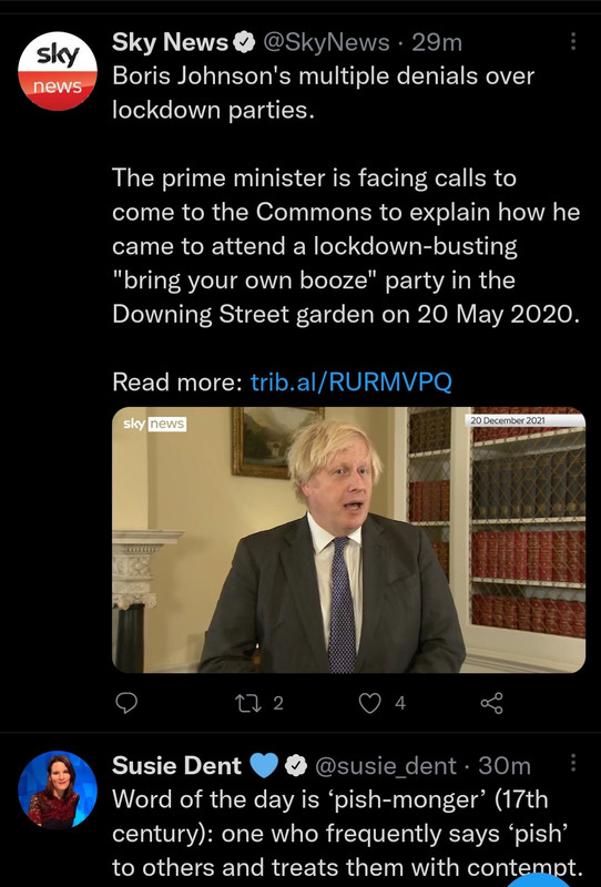 I am still convinced Johnson will hang on and hang on. IMO he simply is incapable of accepting he does anything wrong. I think and hope his hanging on will continue to damage the tory party.