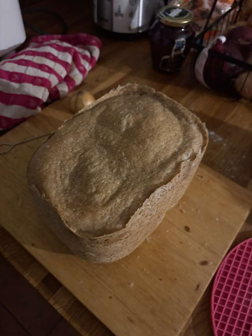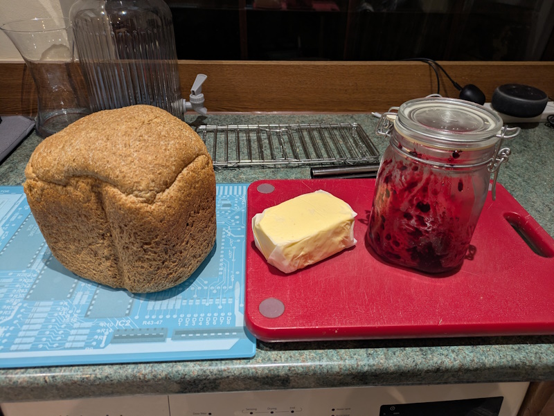 In other news, I have long been irritated by the weird shaped loaves, and I realised this is because the tin has to be that size so the paddle mixes it. I solved this problem in my head by having two paddles. Turns out that many manufacturers have tried twin paddle bread makers and they haven't been successful. A Breville one turned up on local eBay so I bought it. I'll let you know how it goes.