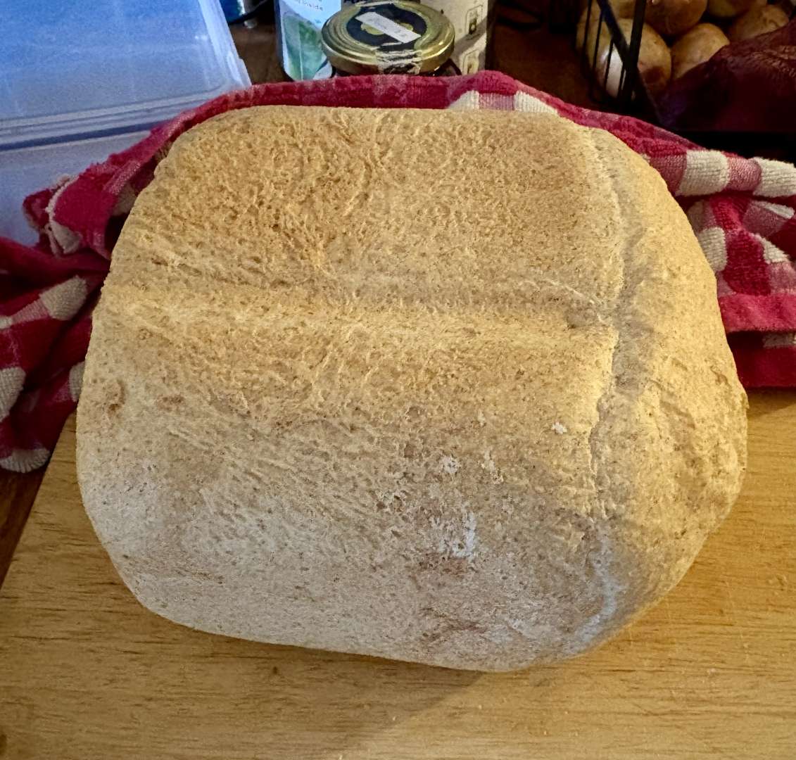 Medium loaf still produced a misshapen top - it seems you need a certain size to get it to rise evenly. I also tried 75% wholemeal with vitamin C but otherwise the same Breville recipe, and it was a bit better than the last machine but still very wholemealy and I'm not sure my family will go for it.