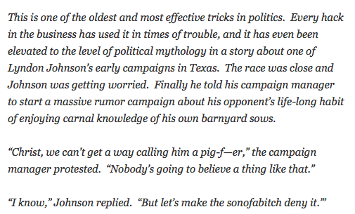 Just consider that for a moment - someone has suggested that the elected prime minister of Great Britain put his cock in a dead pig's mouth in order to be accepted by his posh chums... and it's completely plausible.