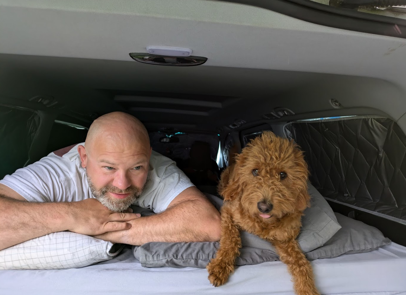 I think you'll find that YOU will be sleeping on the dog bed on the van floor...