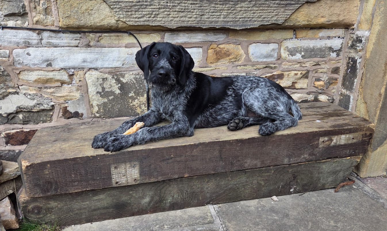 Anyway... very happy pup at doggy day care last week, now with added proto wirehaired beard 🙂