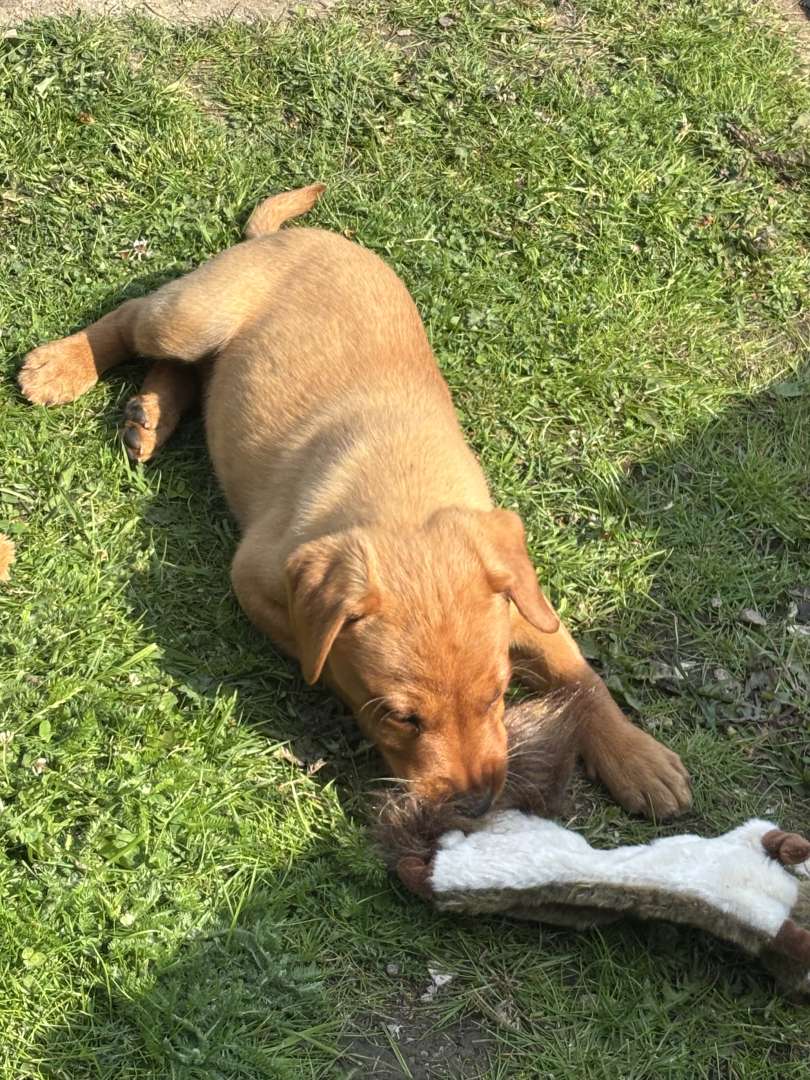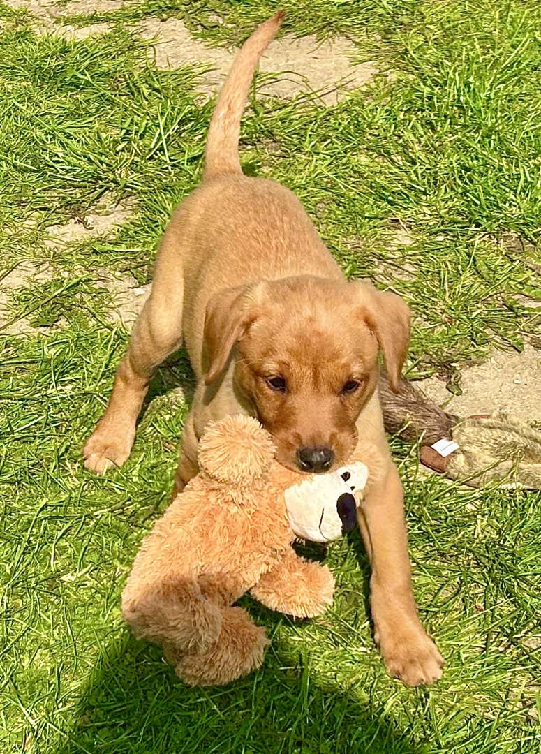 We get Harley on 23rd July when she'll be about 16 weeks old, she's a confident little girl although she's not doing our friend's garden any favours at the moment