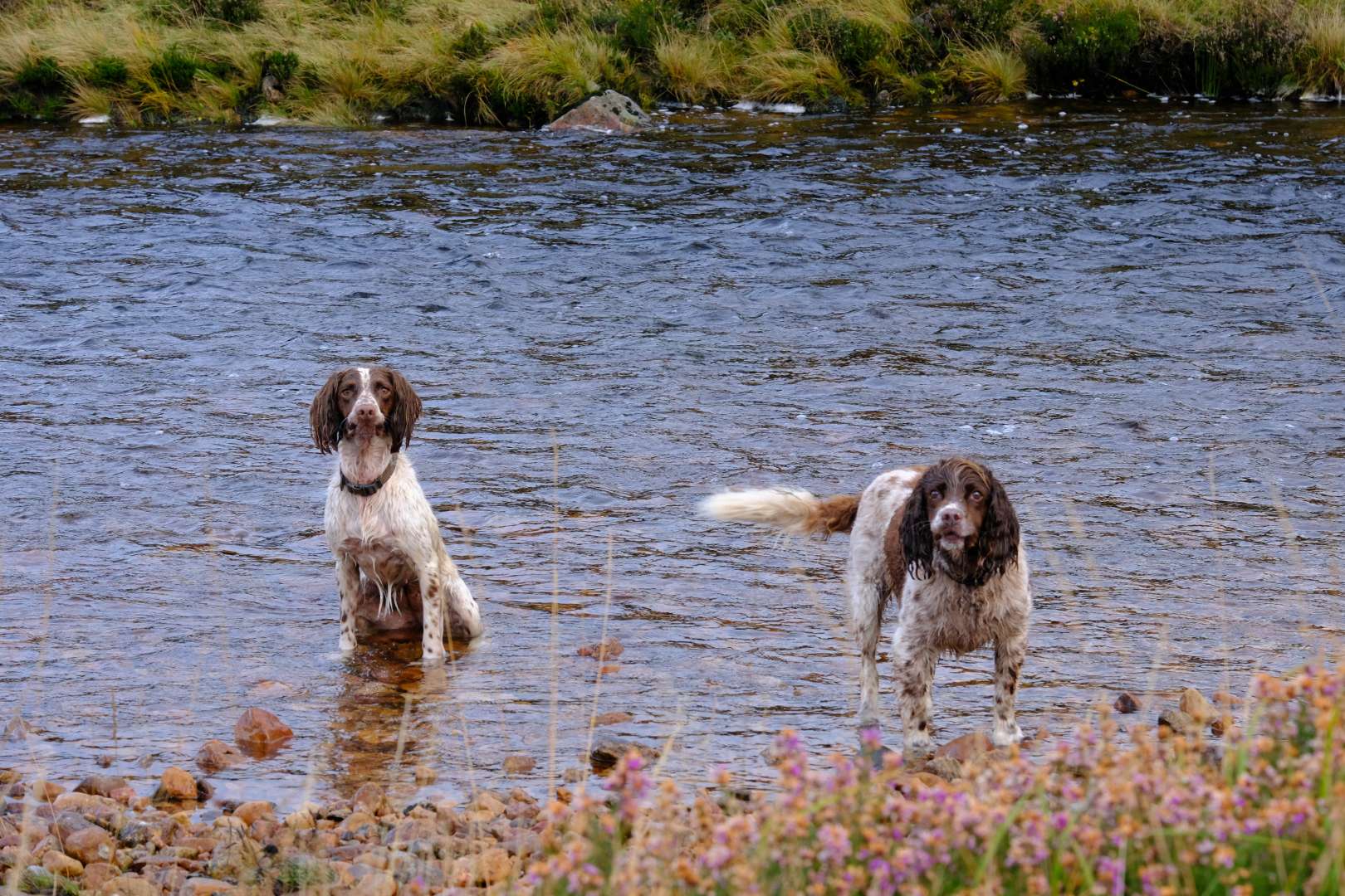 Ha, I love the fact the whiter of those two spaniels is staring at you with a "Yeah, I'm soaking and dirty, what you going to do about it?" expression in every photo.