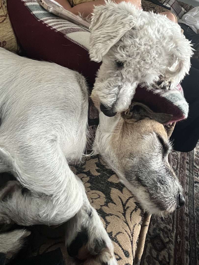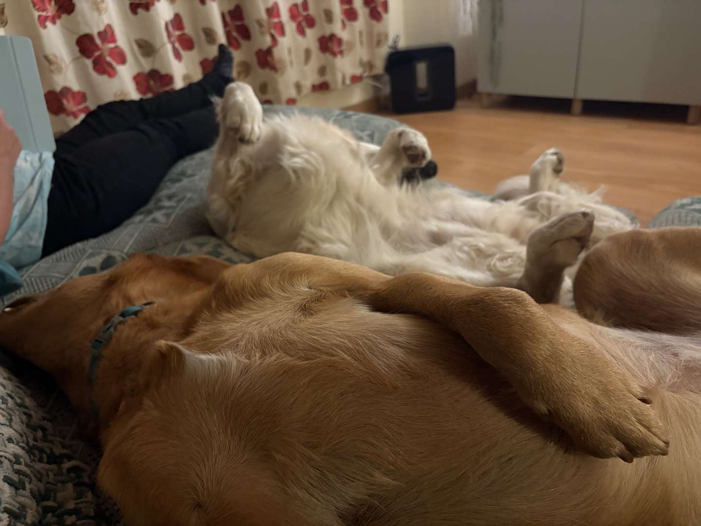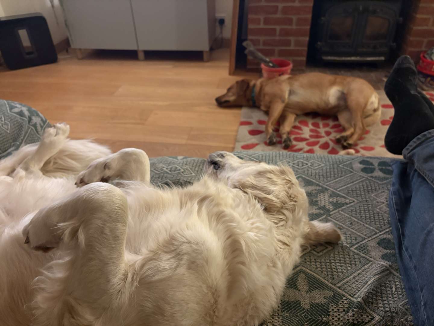 Bit of a rubbish pic of both dogs having capsized on the choppy sofa sea 🙂 There was a lot of snoring and one of them has smelly paws 😉