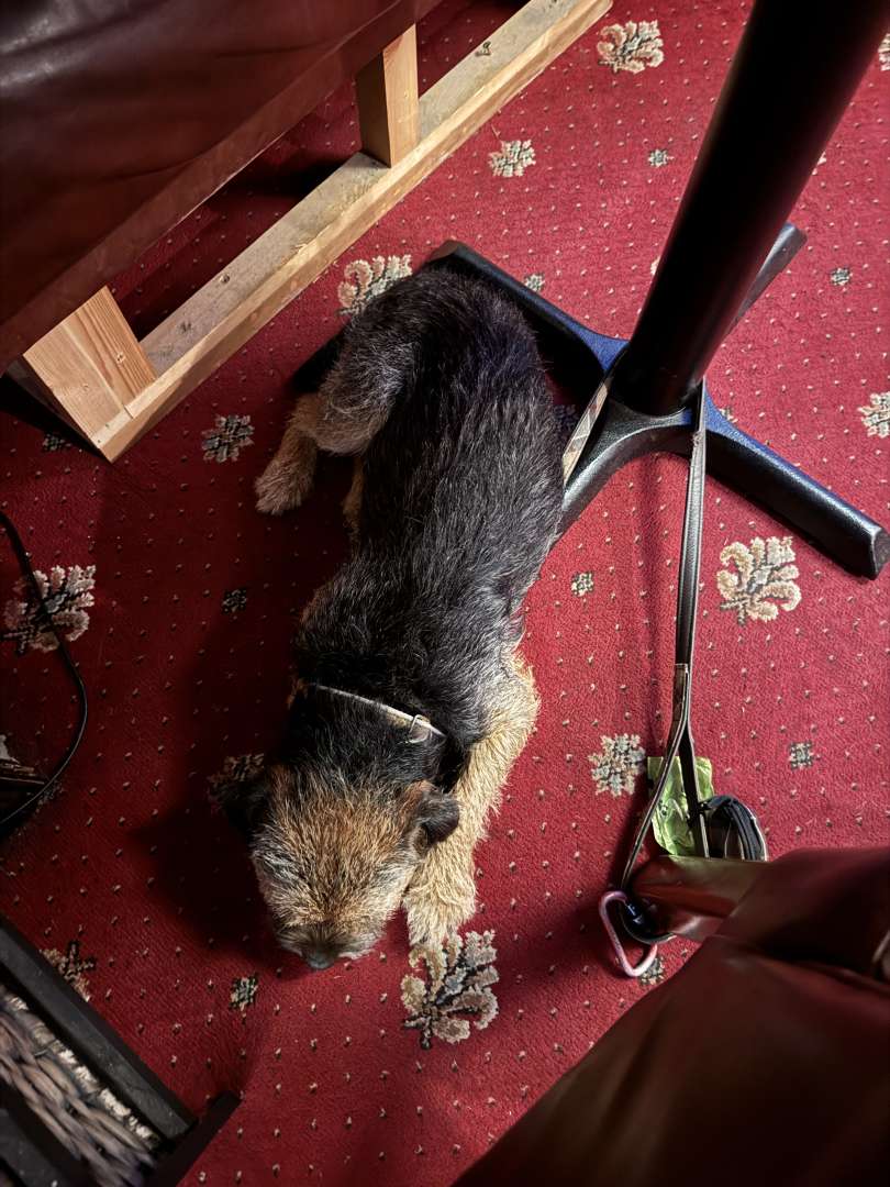 My bestie Oscar has been unwell for a little over a week and 3 weeks in total with break in between. Had blood tests done came back all good, faecal samples awaking the results but finally today he has been his normal self. So, we had a little afternoon out to a cafe and then a couple pubs to watch the rugby. I missed not having him by my side when I’ve been out and spent a few days in the house looking him, getting up through the night and I’m now a fair lump financially worse off. I wouldn’t have it any other way to have him back. He crashed out for an hour or so when we got back which he doesn’t normally do but not surprised after what he has been through.