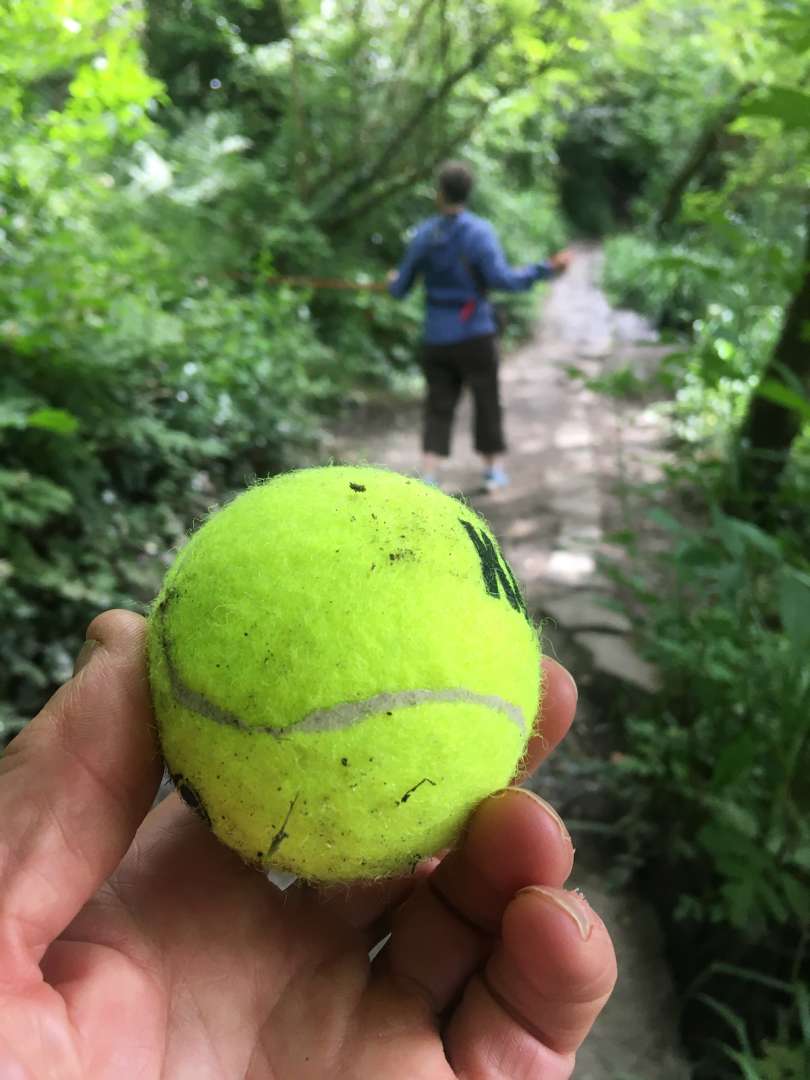 His first ever ball find from the undergrowth, NOT stolen 🙂