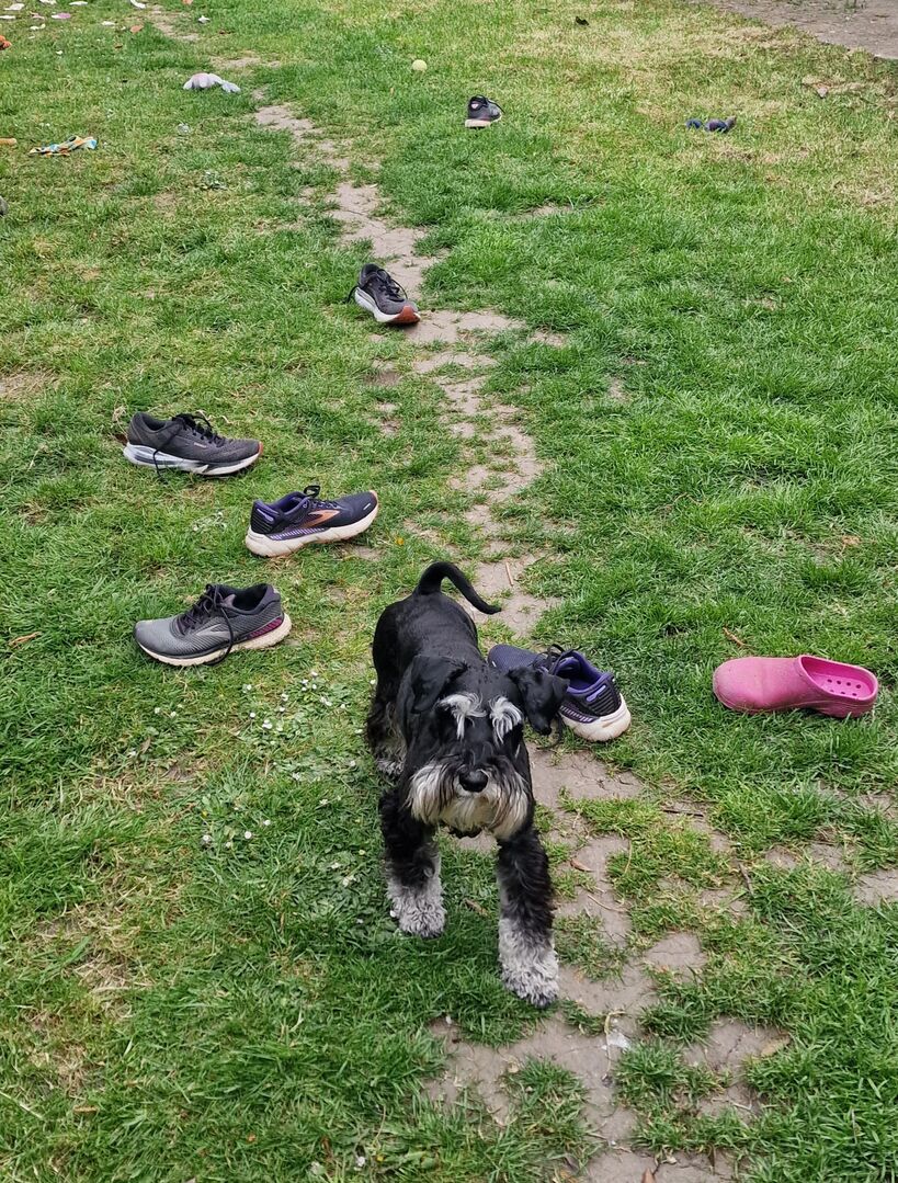 Talking of deer, this chap usually just has a thing for shoes. We discovered he also has a thing for deer. Walking in the local meadows some rustling in the bushes, both shoutzners getting interested, a deer pops out and legs it across the meadow. This lad takes off after it like a shot. Never seen one in the wild before. Don't know what he'd have done if he got close. Deer disappeared into bushes the other side, and this one keeps sniffing and quartering trying to work out where it's gone. Need to do some work on recall, cos he was so transfixed he couldn't hear the whistle. Back to the training lead when we're next over there