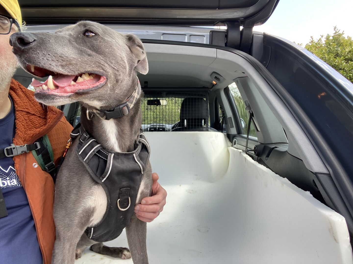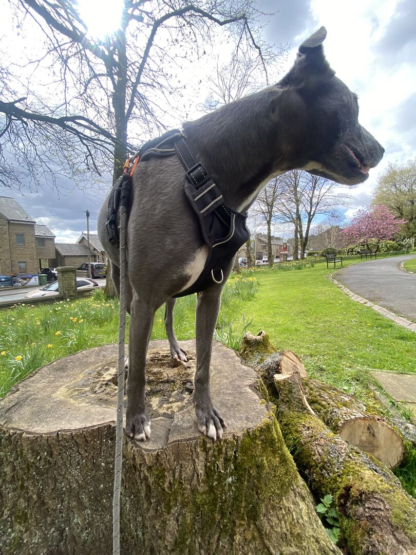 Took ‘Buddy’ out first thing this morning. Super nice Brindle Lurcher but has a massive food drive! As soon as he knows you have treats he’s constantly mithering for them.