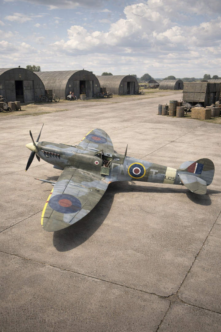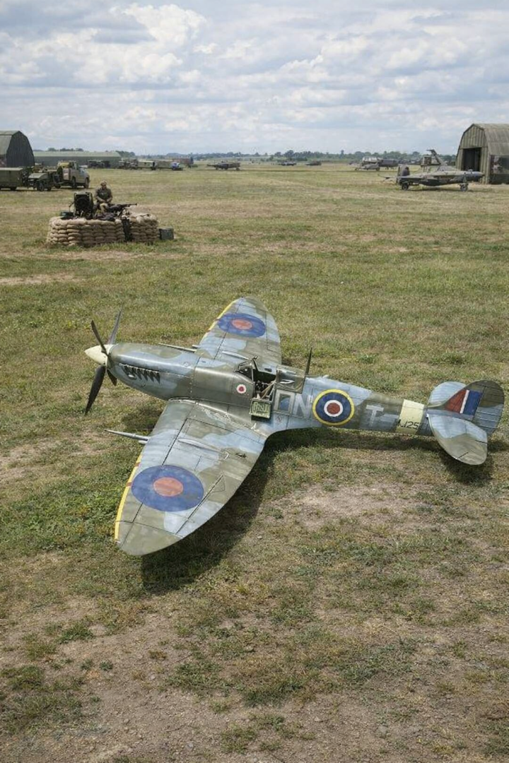 Missed BoB day by just a week or so, but finished the Tamiya Mk1a (It's the old 1996 mold rather than their newer one) as N3200 of 19 Sqn in Summer 1940. I think lots of folk think of the RAF in those days as "Jolly Japes for public school boys" and while there certainly was a effort by some of them to affect an air of nonchalance, this particular plane was sometimes flown by Brian Lane who you can see from the famous photo taken straight after a sortie, the strain on his face. Brian was later KIA in 1942 during one the [frankly pointless] fighter sweeps into northern France, his body was never recovered. N3200 crashed on Sangatte beach after shooting down a Ju87 and was recovered and restored to flying condition in 2000. It's regarded as one of the most authentic flying Spitfires, and currently is part of the flying display at IWM Duxford.