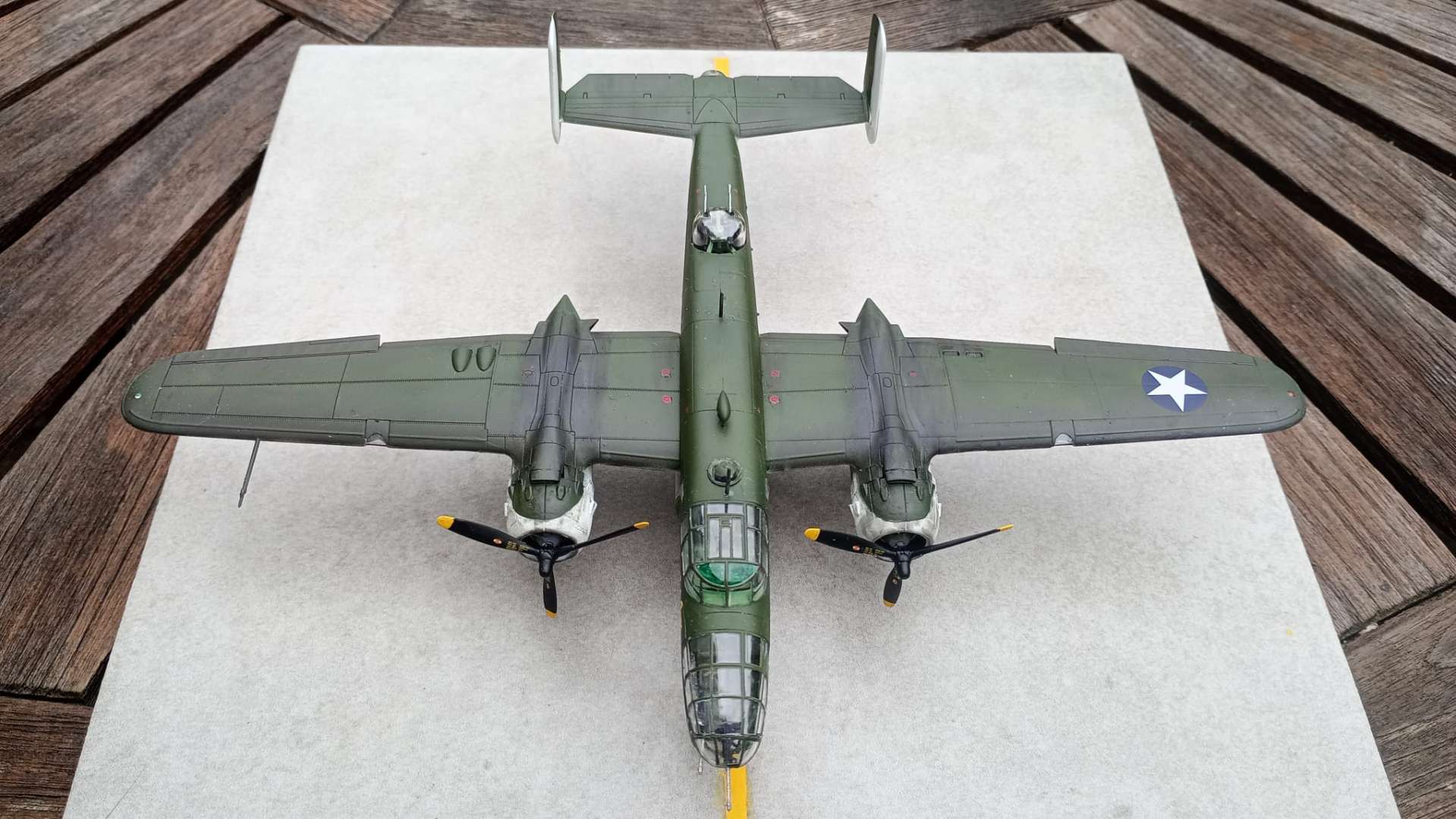 Everytime I think I might want to do something like B-25, I look at all the glazing and I lose the will to live. Nice work HtS, lots to work on a Mitchell, the wing angles are all over the place, it's almost guaranteed to be a tail sitter (and where do you put the weight?) and you have to make two of everything. Love the scheme. 🍻