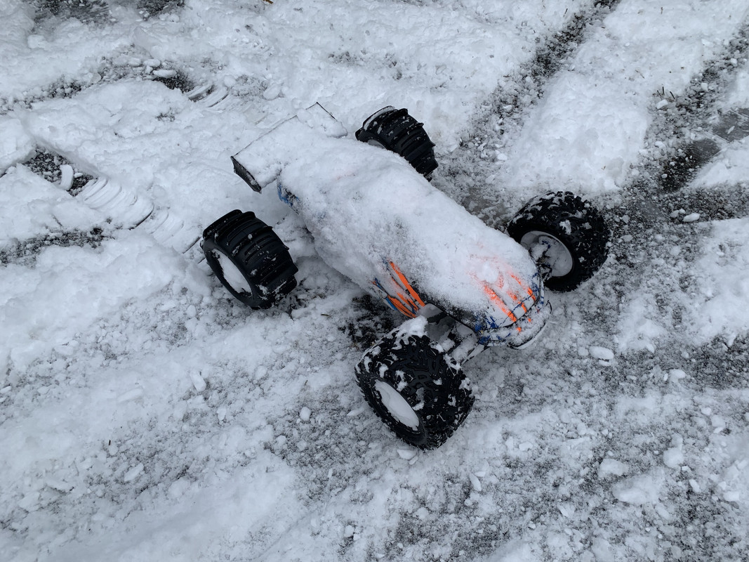 A Unimog enjoying life in the snow yesterday. The scoot park was predictably still covered in the thick white stuff so we had great fun in a car park - some deep snow and some compacted. Some ice too. It coped pretty well and the wheel problems are now a thing of the past now I've sorted out the hubs. Went through 2 batteries which is a record for us - usually something wheel related breaks!