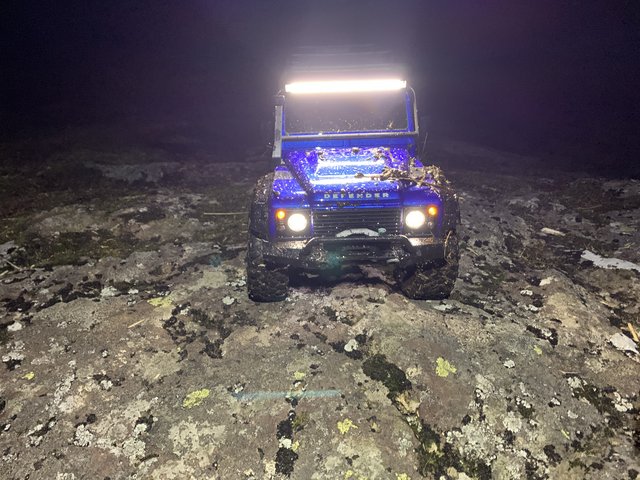 Had the trx4 out for a wee crawl in the dark with a light kit. Says it’s waterproof so thought I’d test that out properly in some Scottish bog. It survived the bog, and was an absolute blast. Made it up some amazingly steel muddy hills. However a bit later it died. Upon examination after a hose down, seems I lost a brush from the motor. A cheapish fix and worth it for the fun!