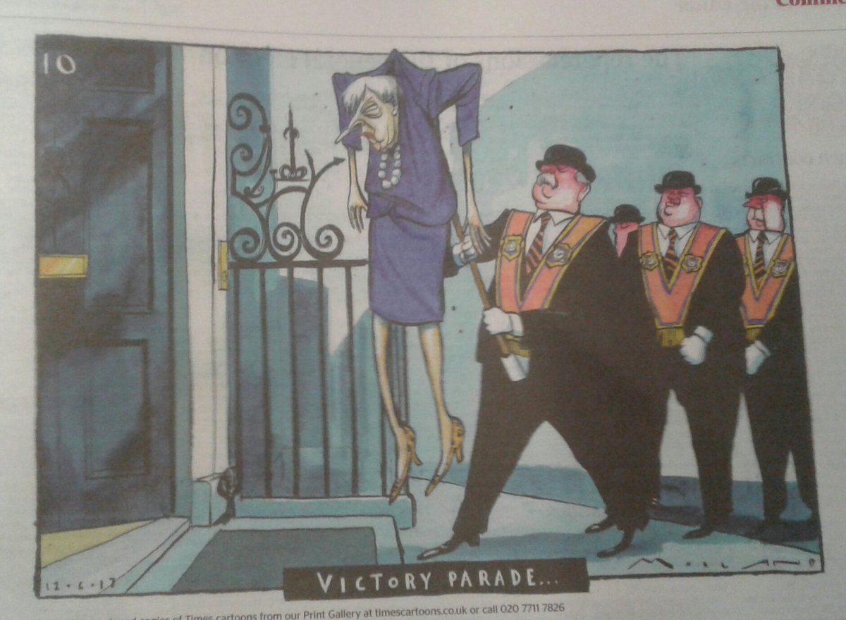 For sure, we can all have a giggle at the irony of the Tories cuddling up to a party with a dodgy past. But make no mistake, the DUP are scumbags who filled a unionism vacuum when Trimble lost the Orange Order's support, eventually dropping from No.1 party in NI to the recent dismal No.4 (or is it 5?).