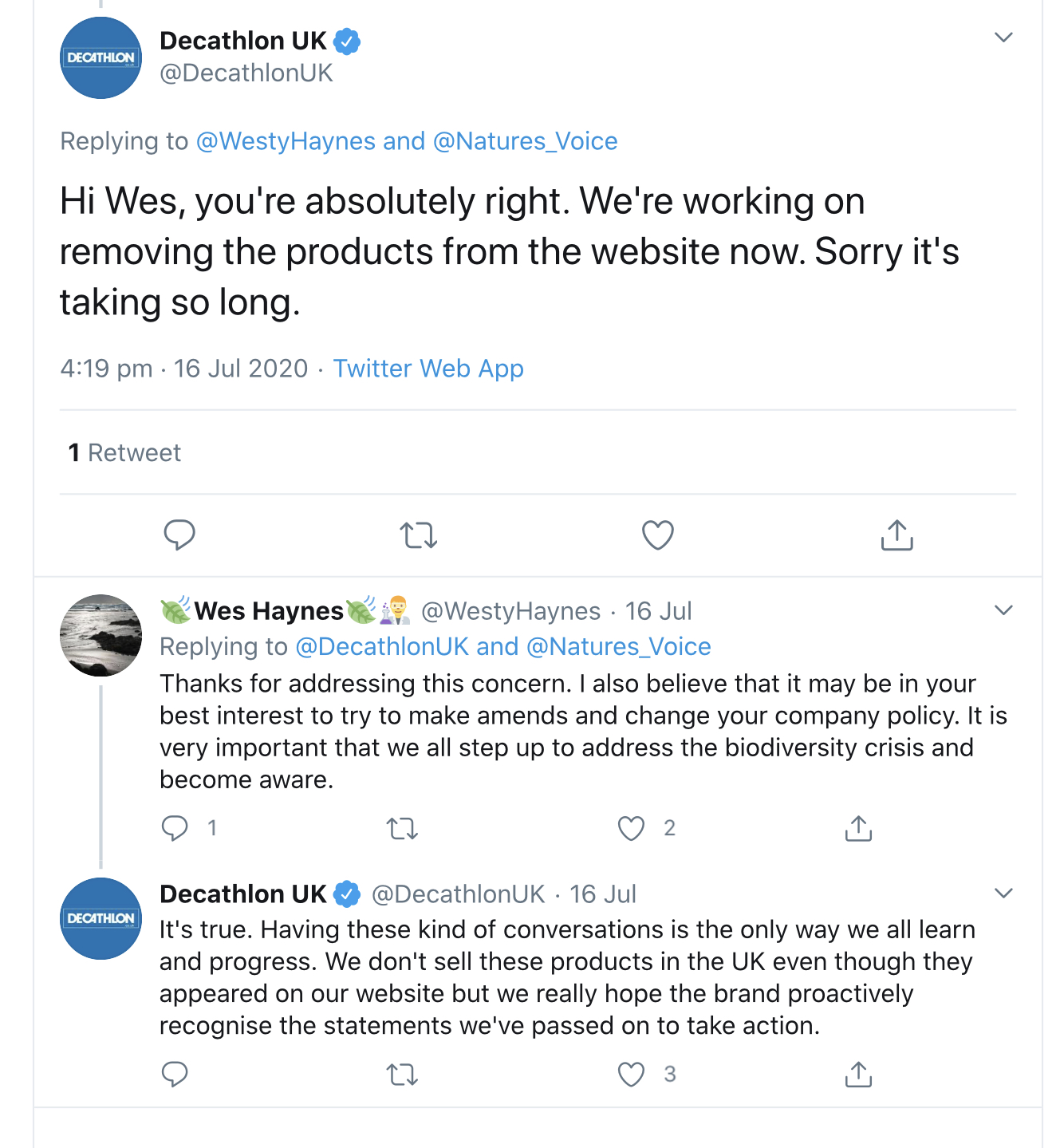 ^ The petition and concern has been spreading through social media. Decathlon UK have been responding positively.